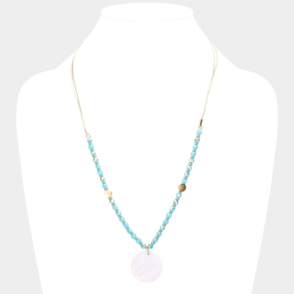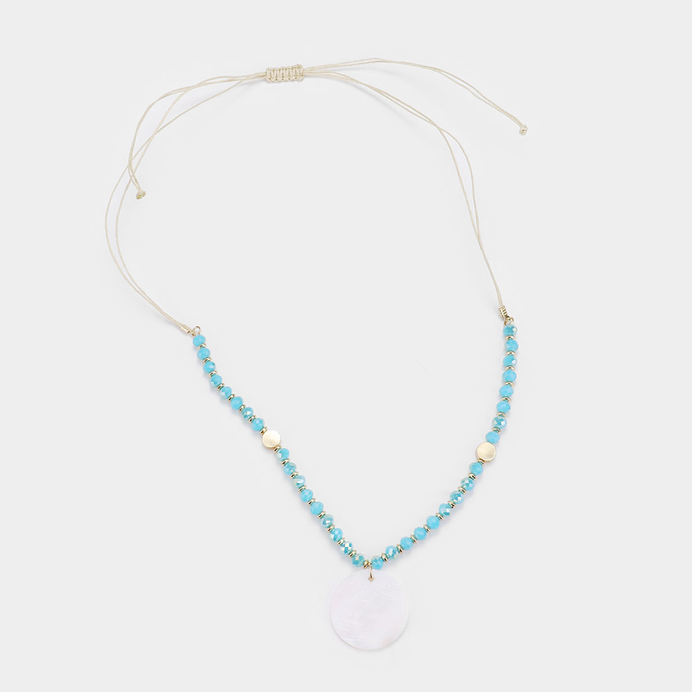 Mother of Pearl Pendant Faceted Beaded Adjustable Necklace