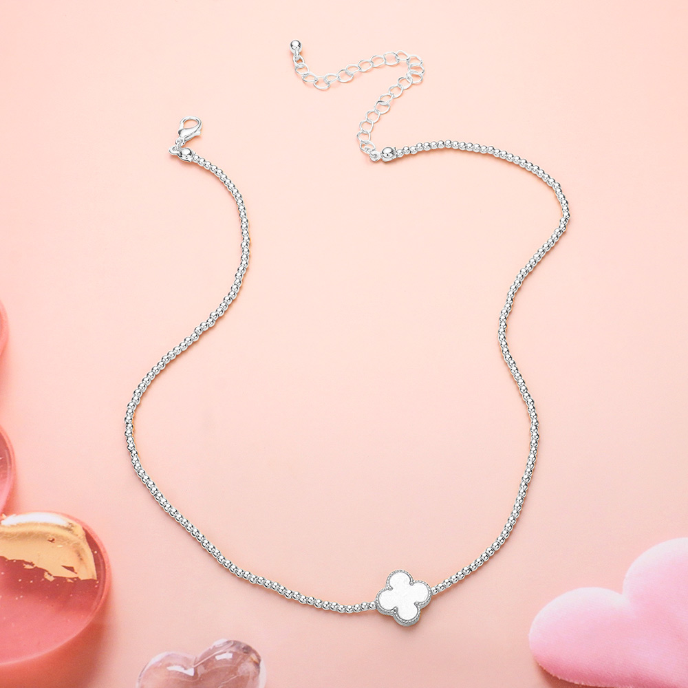 Gold Dipped Mother Of Pearl Quatrefoil Station Necklace