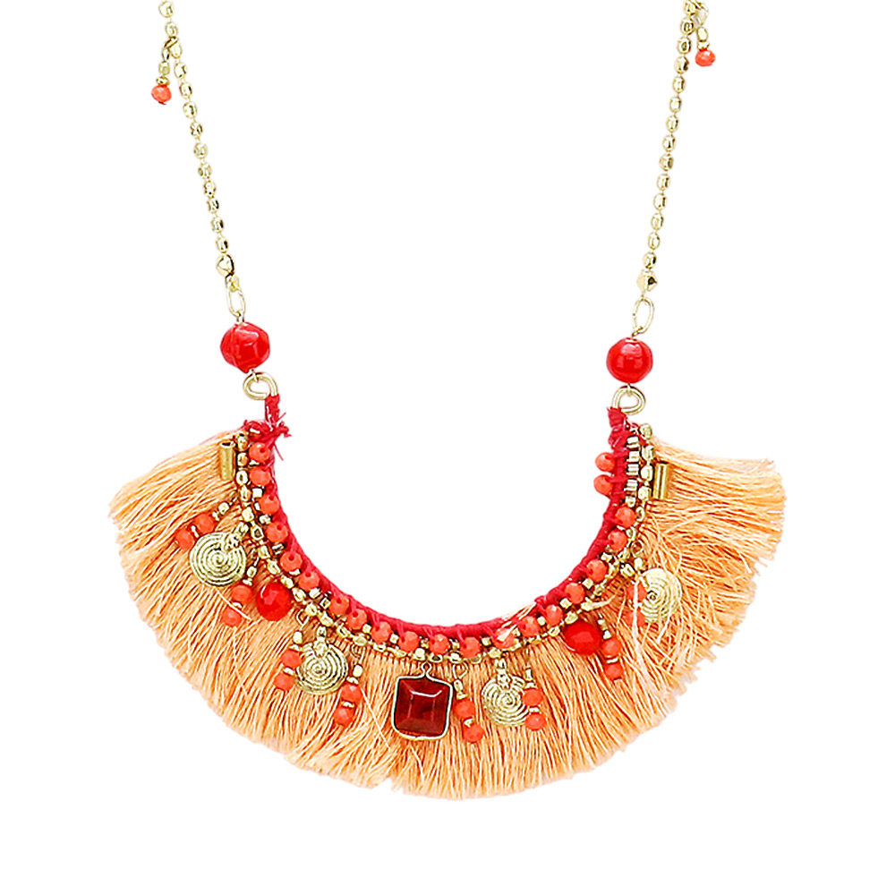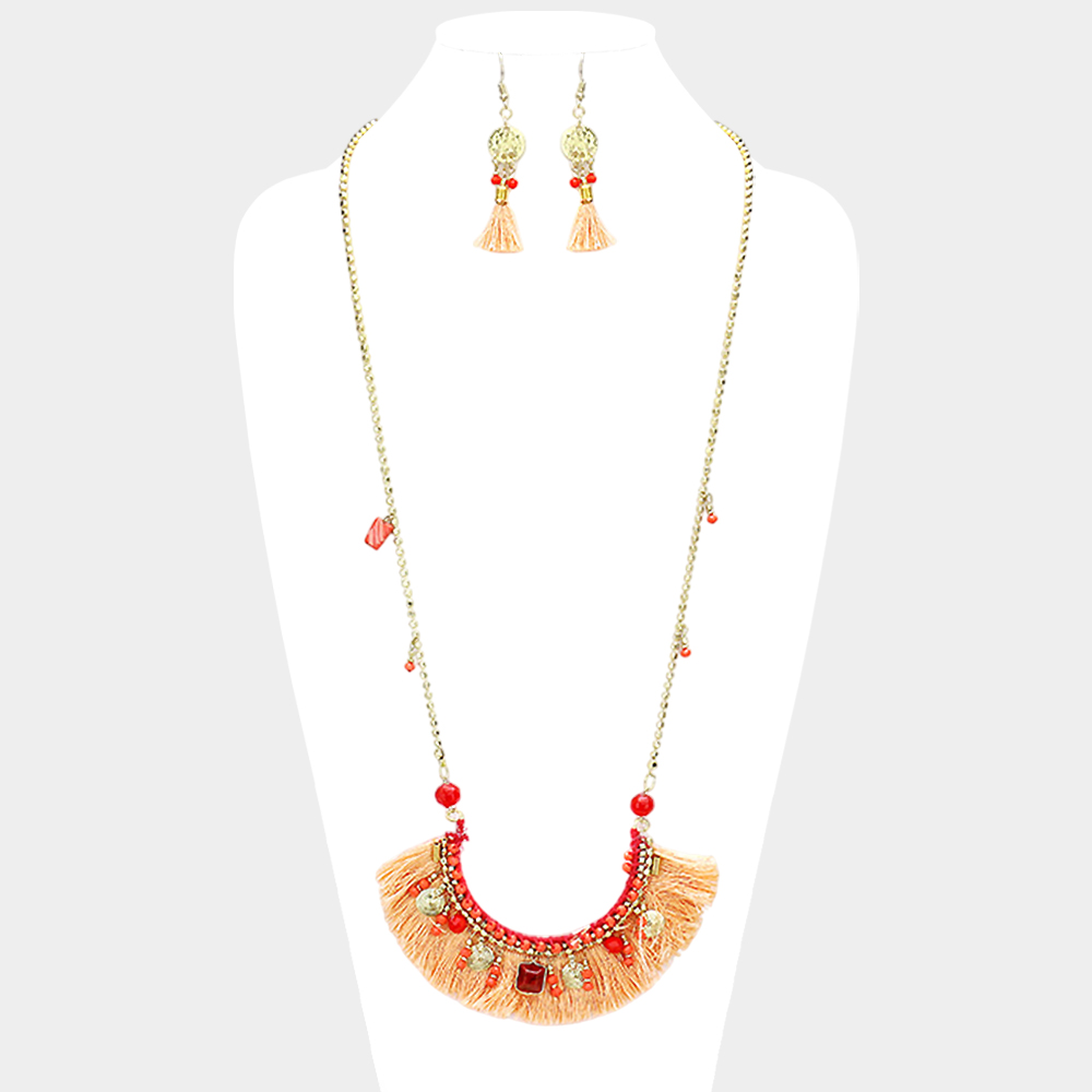 Thread Wrapped Square Hoop Drop Chain Tassel Necklace