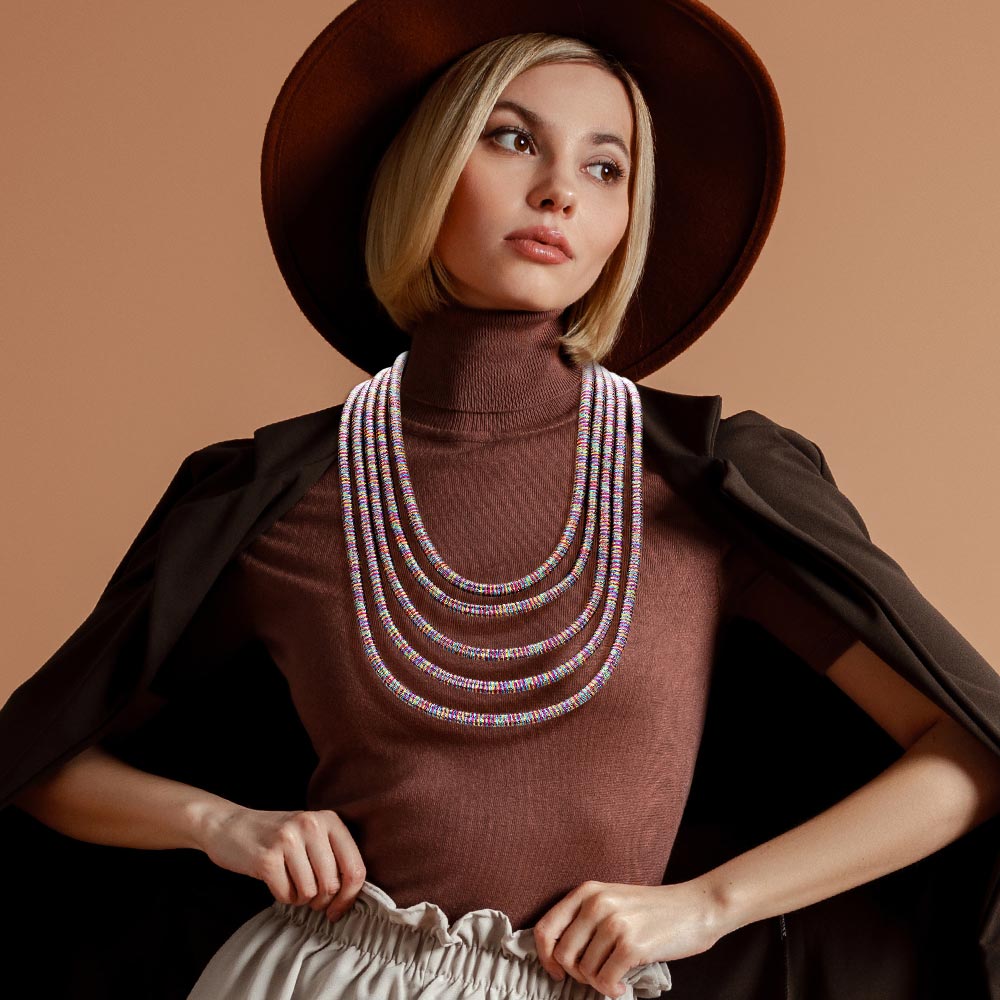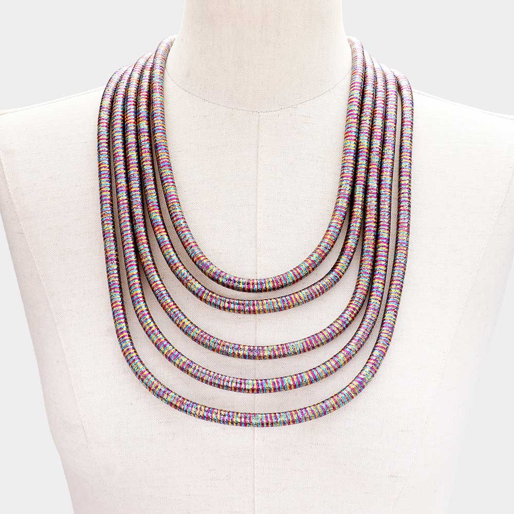 Multi Layered Coil Pope Bib Necklace