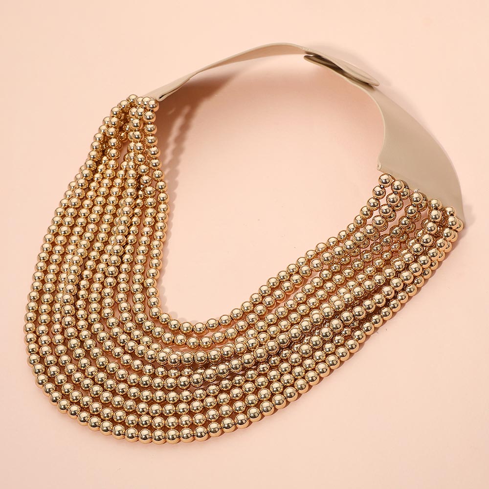 Multi Layered Metal Ball Beaded Magnetic Statement Collar Necklace