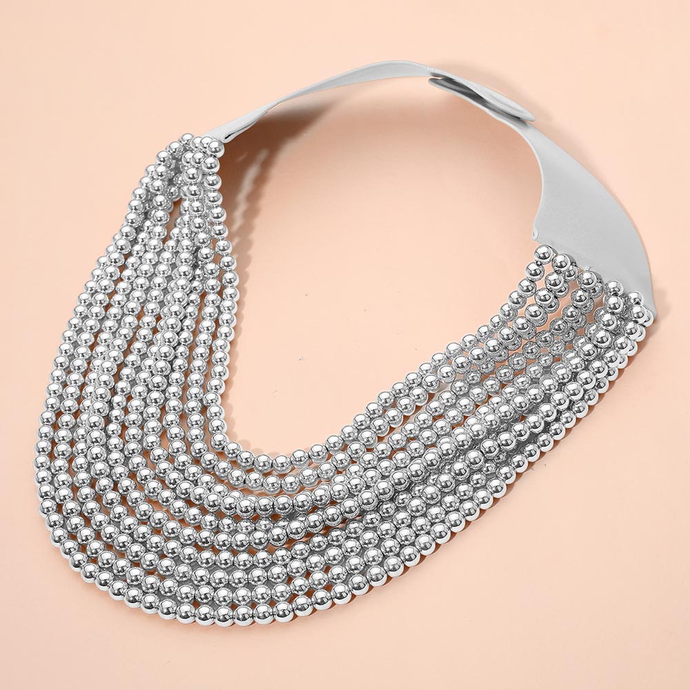 Multi Layered Metal Ball Beaded Magnetic Statement Collar Necklace