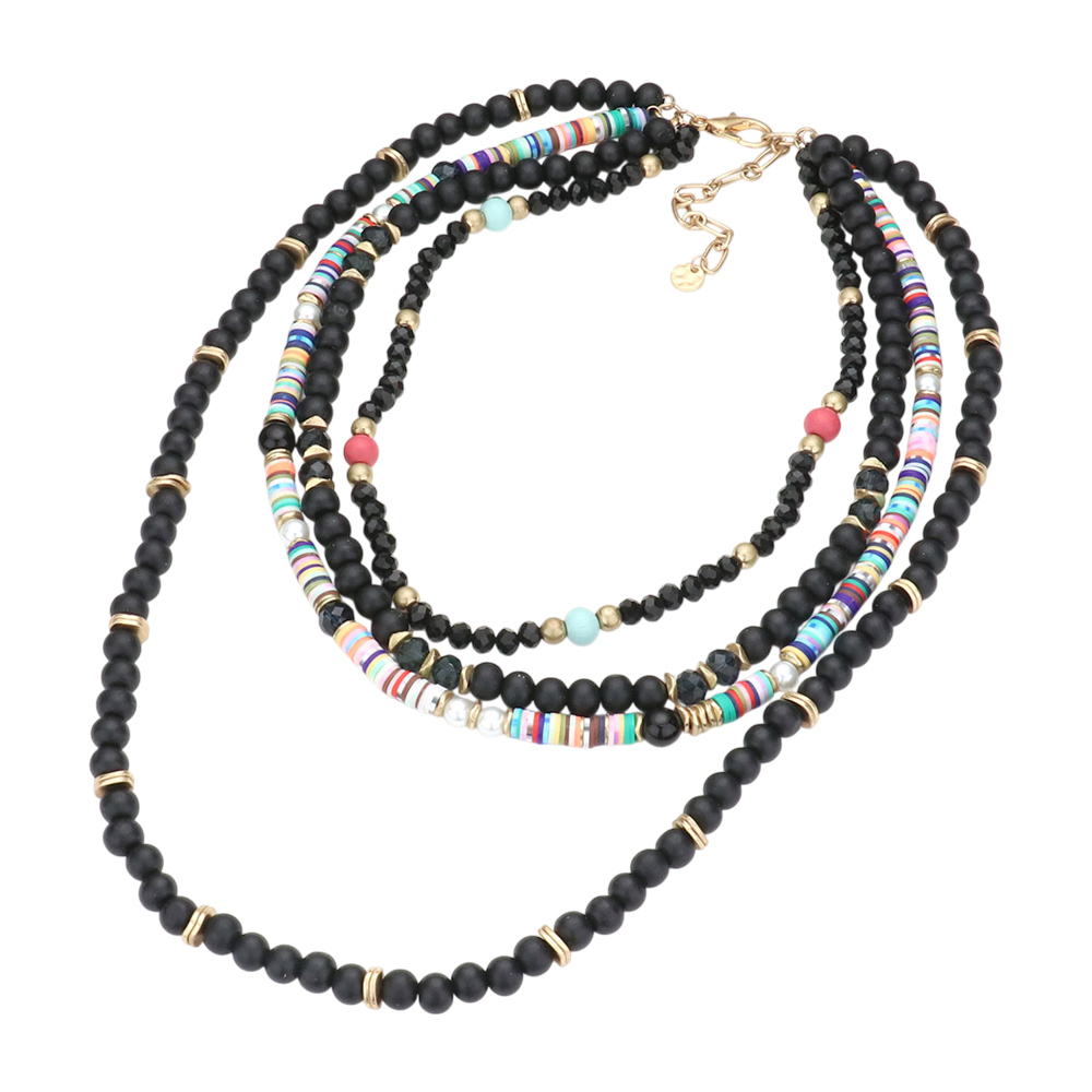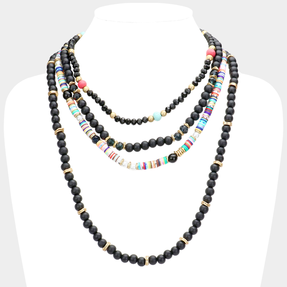 Multi Layered Wood Heishi Beaded Bib Necklace
