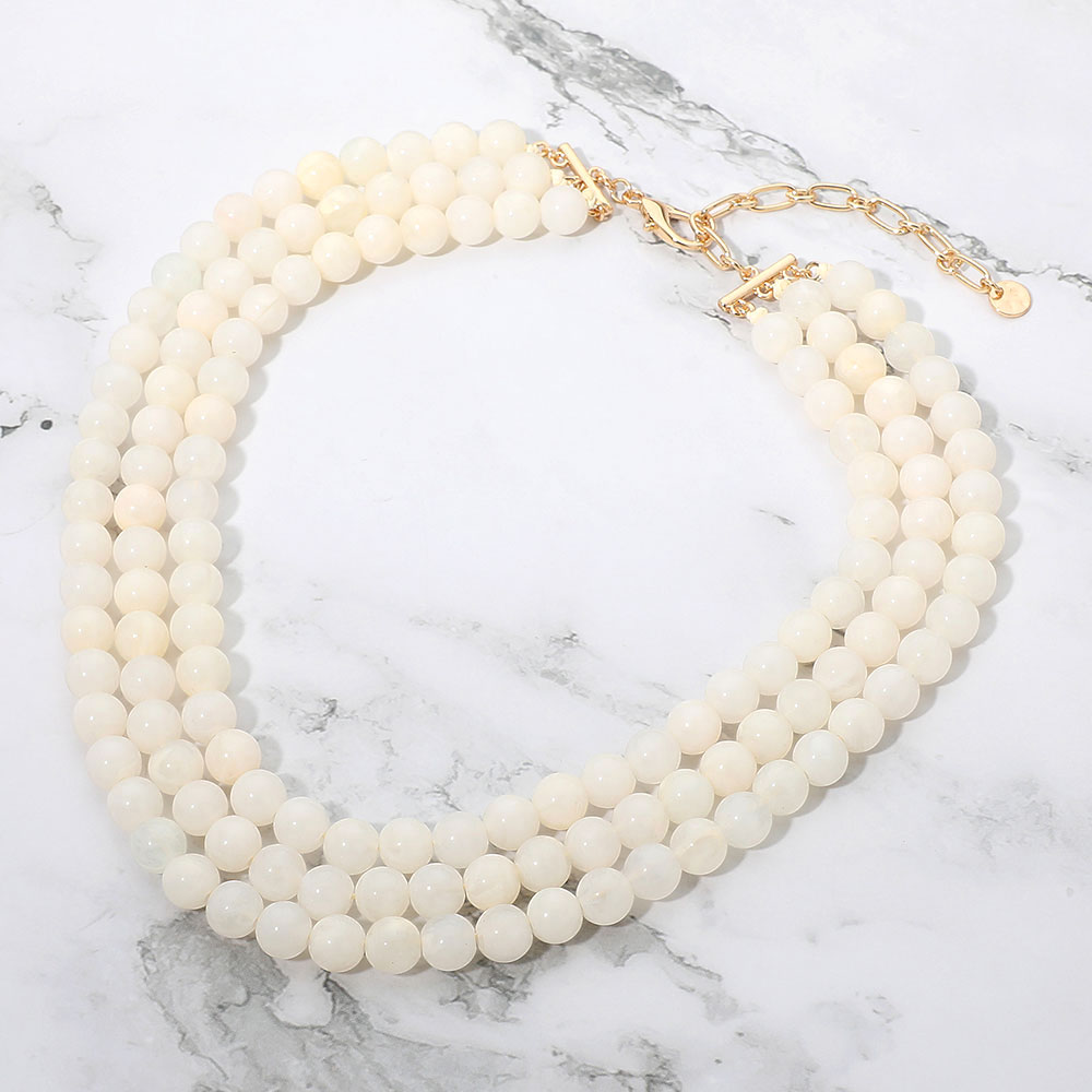 • Enhance any look with this refined multi-strand beaded necklace designed to create a graceful layered effect. Its polished spheres offer a timeless aesthetic, making it an ideal accessory for elevating both casual and formal outfits with understated sophistication.