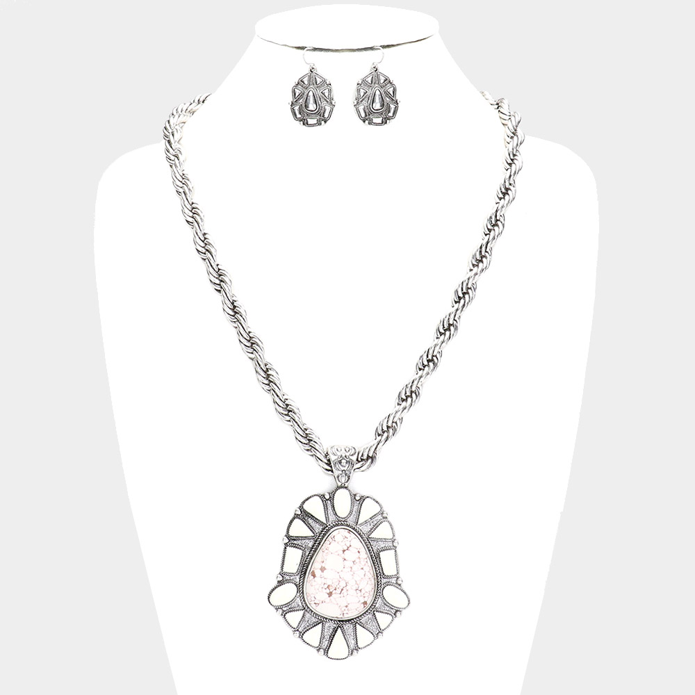 Natural Stone Embellished Squash Blossom Navajo Bead Necklace