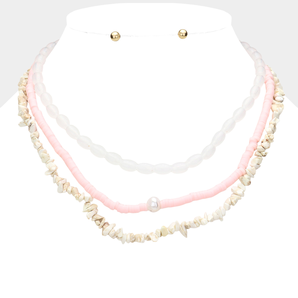 Natural Stone Oval Heishi Beaded Triple Layered Necklace
