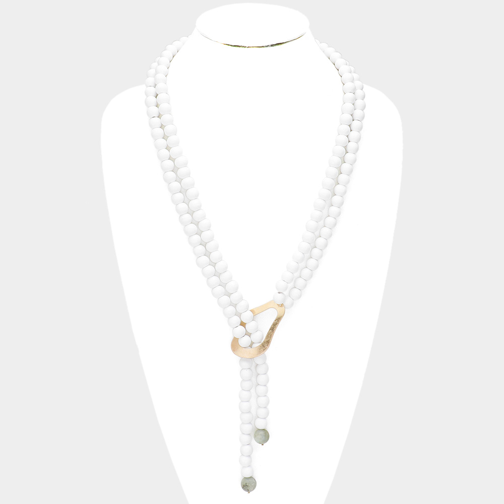 2PCS - Chunky Marbled Natural Stone Wood Ball Beaded Stretch Multi Layered Bracelets