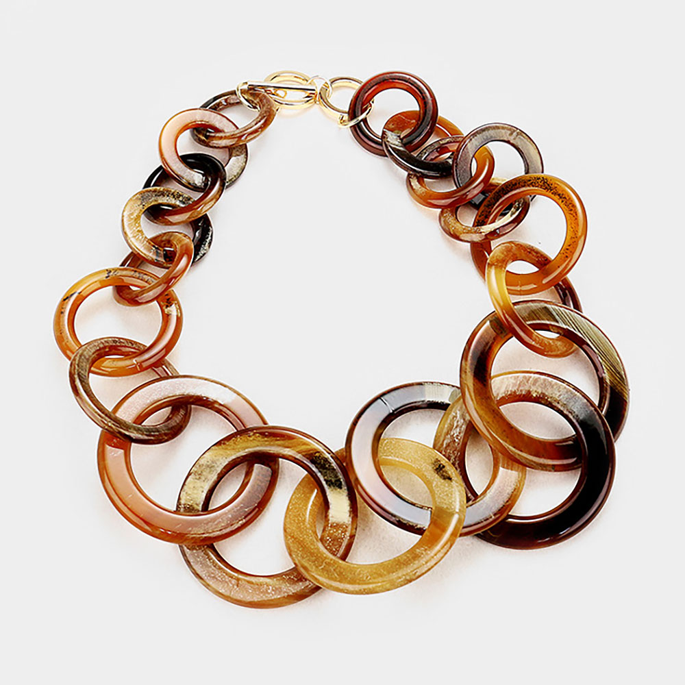 Open Circle Celluloid Acetate Link Necklace Open Circle Celluloid Acetate Link Necklace
