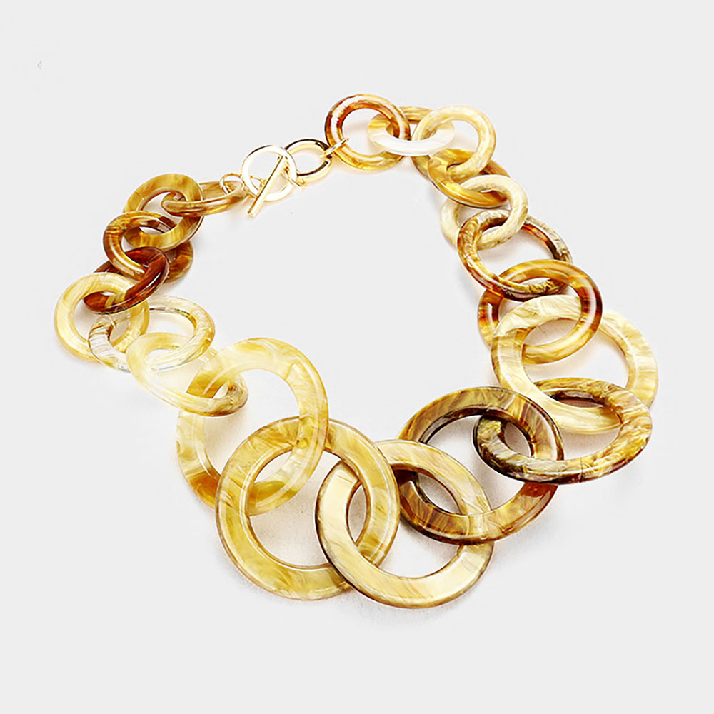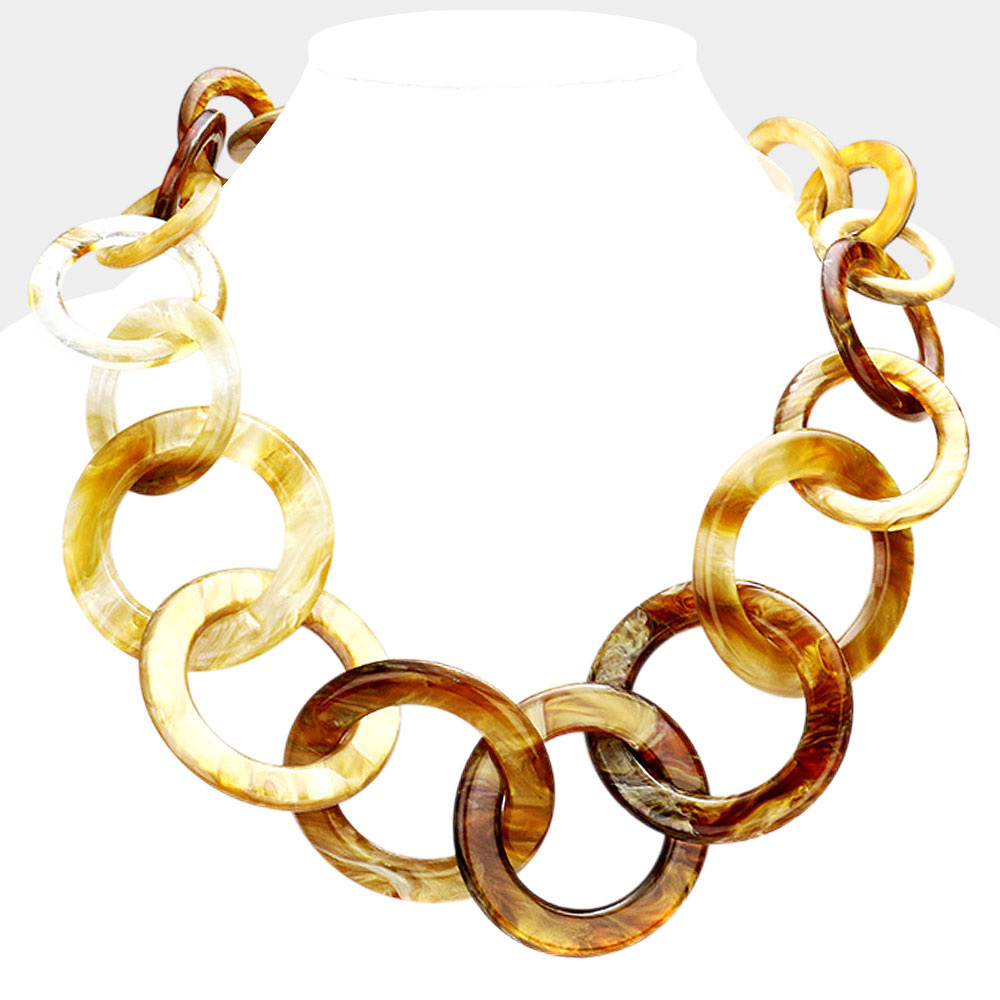 Details • Necklace Size : 21" + 1" L • Decor Size : 2" L • This chunky necklace features oversized interlocking resin links in a smooth finish, creating a bold statement look. Ideal for elevating everyday outfits or adding flair to special occasions with effortless sophistication. • Lead and Nickel Compliant