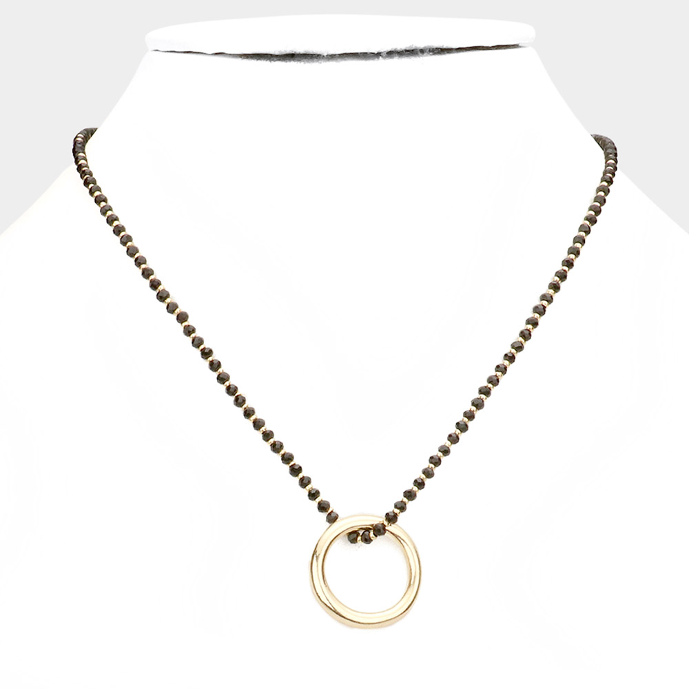 Open Metal Circle Pendant Faceted Beaded Necklace