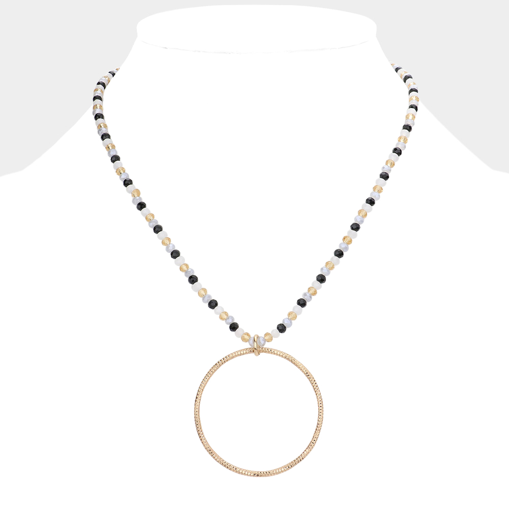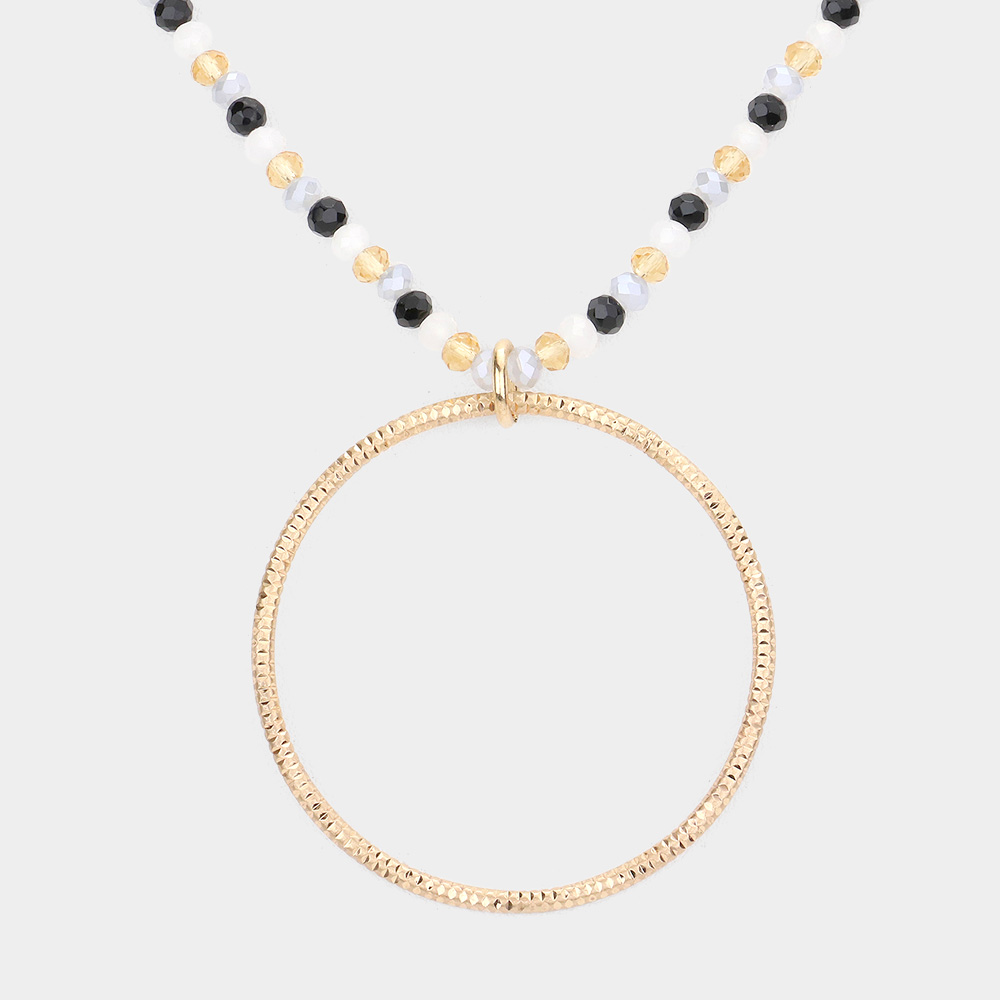 Open Metal Circle Pendant Faceted Beaded Necklace