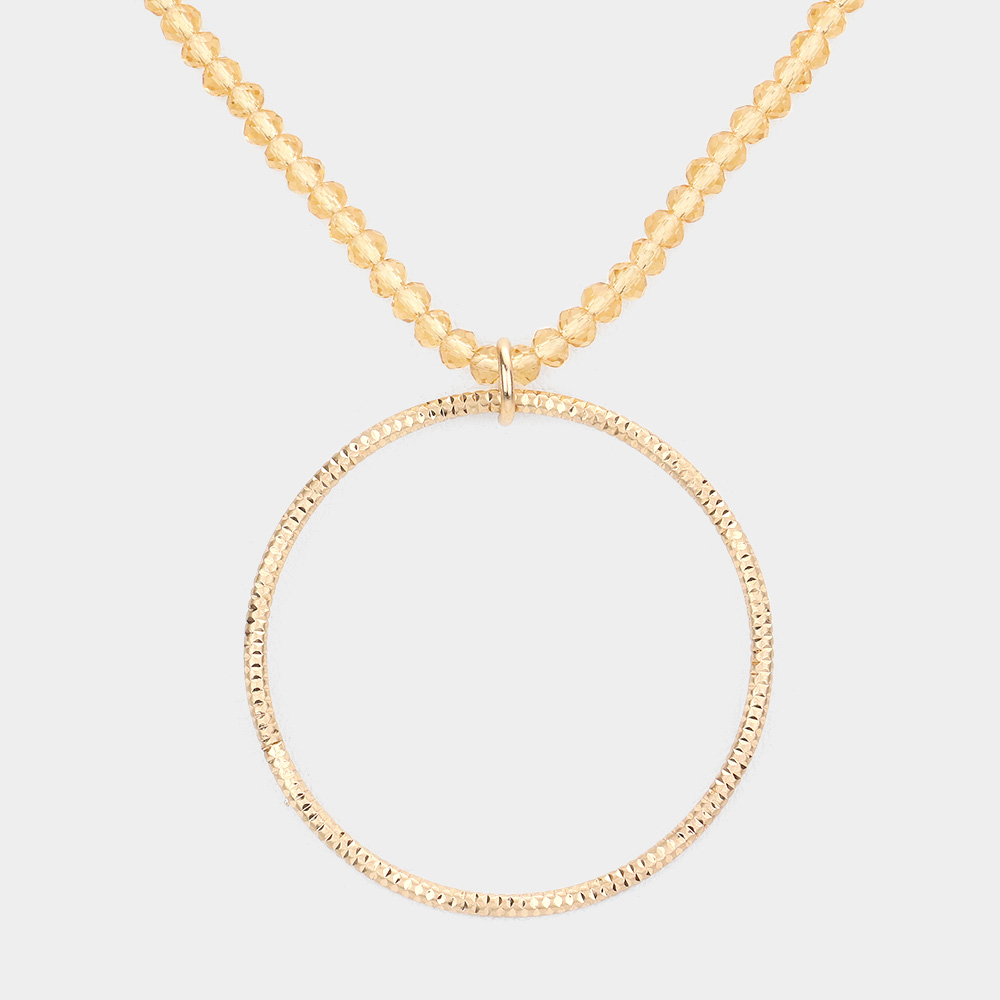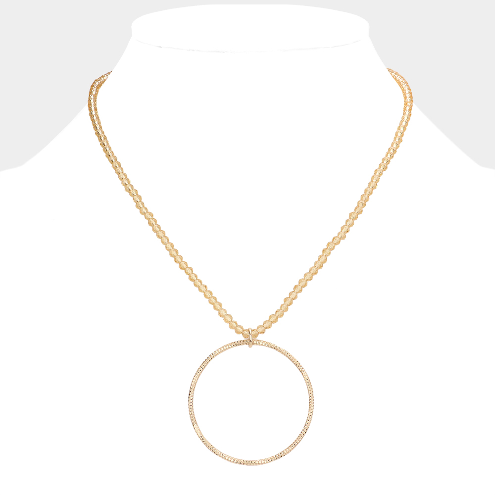 Open Metal Circle Pendant Faceted Beaded Necklace