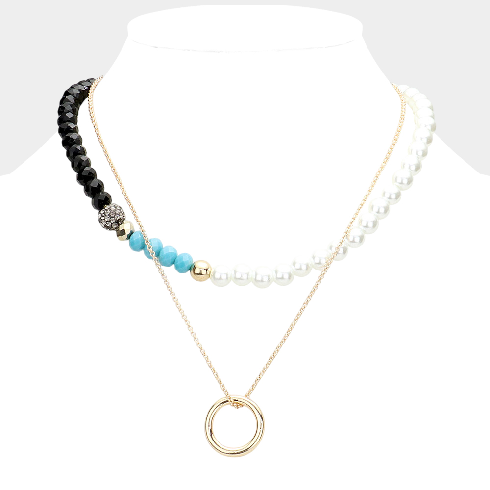 Open Metal Circle Pendant Pearl Shamballa Ball Faceted Beaded Necklace