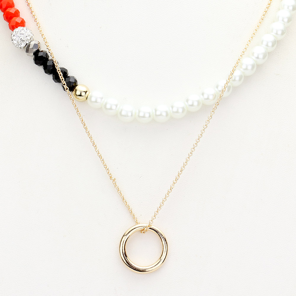 Open Metal Circle Pendant Pearl Shamballa Ball Faceted Beaded Necklace
