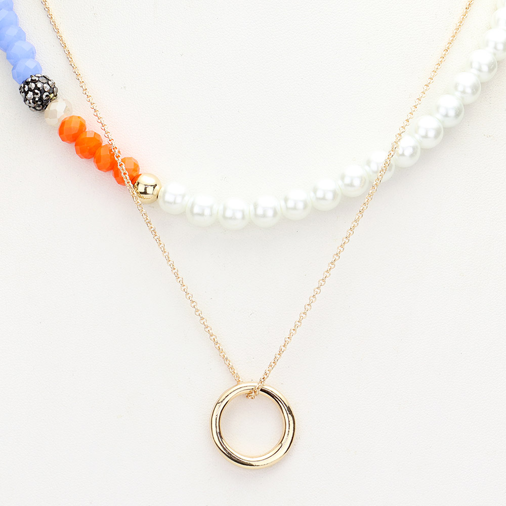 Open Metal Circle Pendant Pearl Shamballa Ball Faceted Beaded Necklace