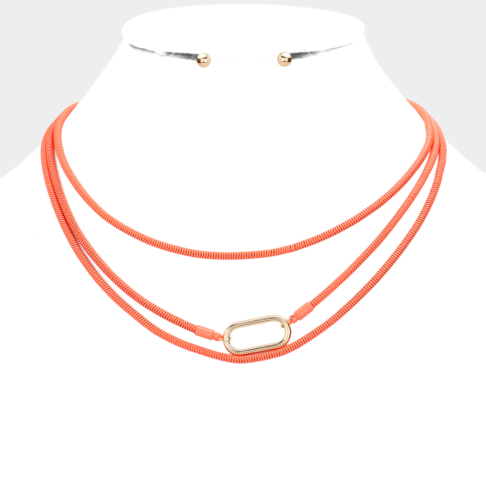 Open Metal Oval Accented Colored Chain Layered Necklace