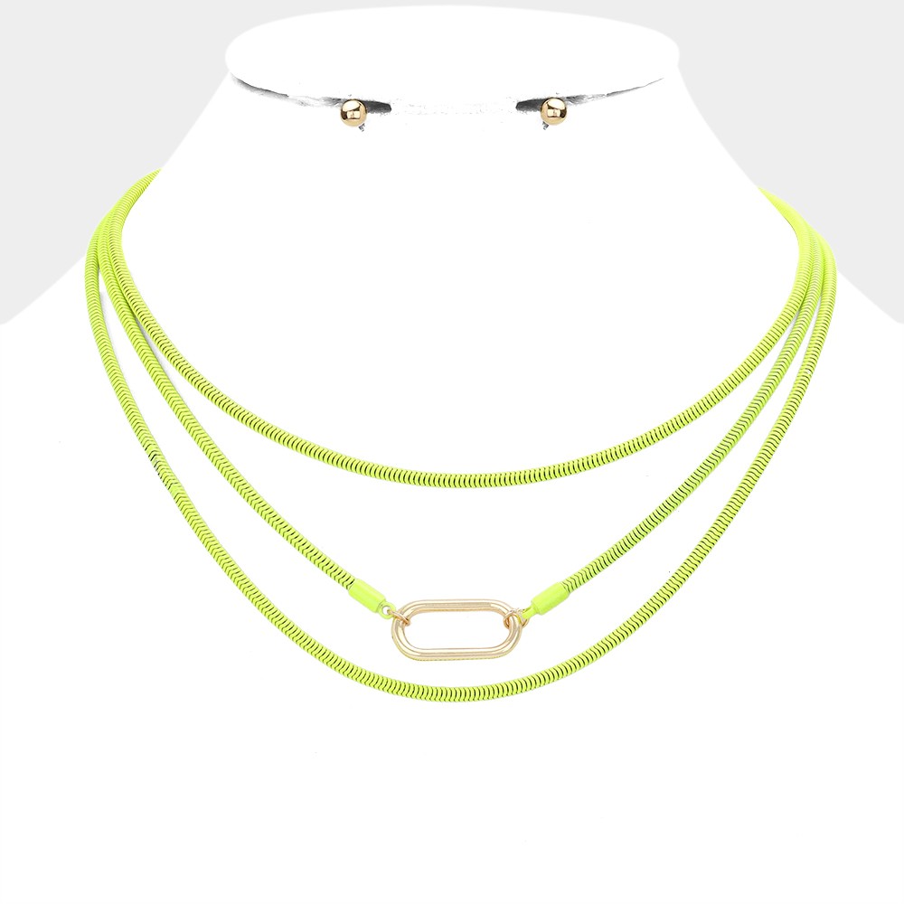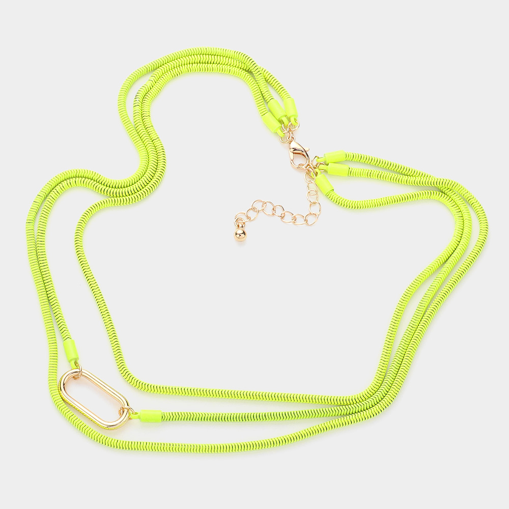 Open Metal Oval Accented Colored Chain Layered Necklace