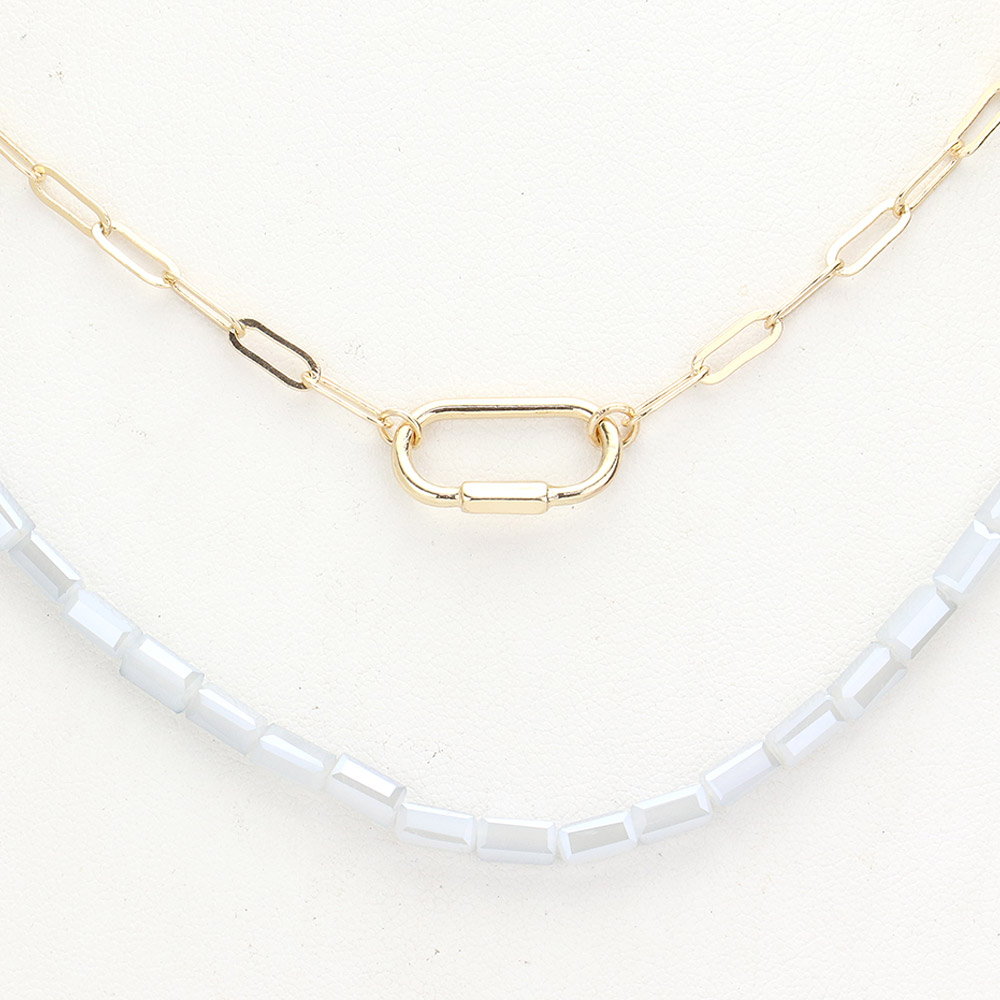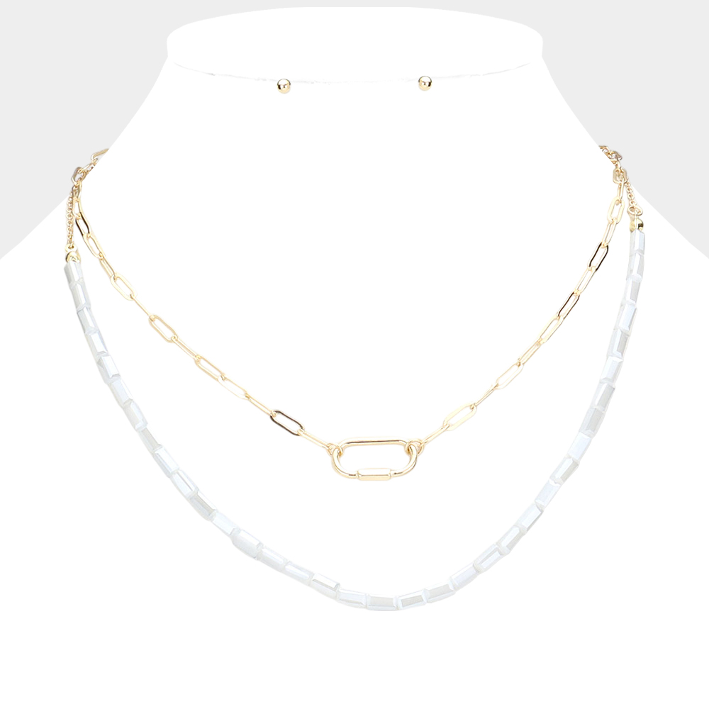 Open Metal Oval Pendant Accented Rectangle Beaded Double Layered Necklace