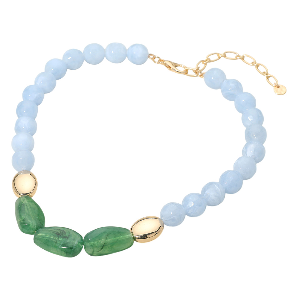 Details • Necklace Size : 18" + 3.5" L • Decor Size : 0.6" L • Elevate your accessory game with this two-tone beaded necklace featuring a balanced mix of polished beads and smooth center stones. A perfect blend of modern design and earthy elegance. • Lead and Nickel Compliant
