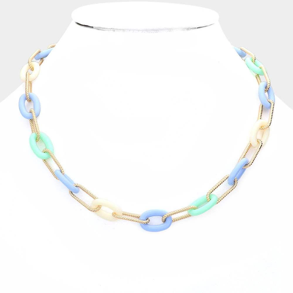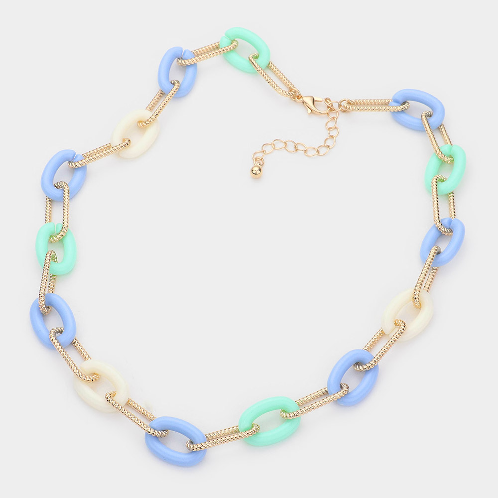 Stone Center Brass Metal Star Lock Pendant Toggle Necklace
