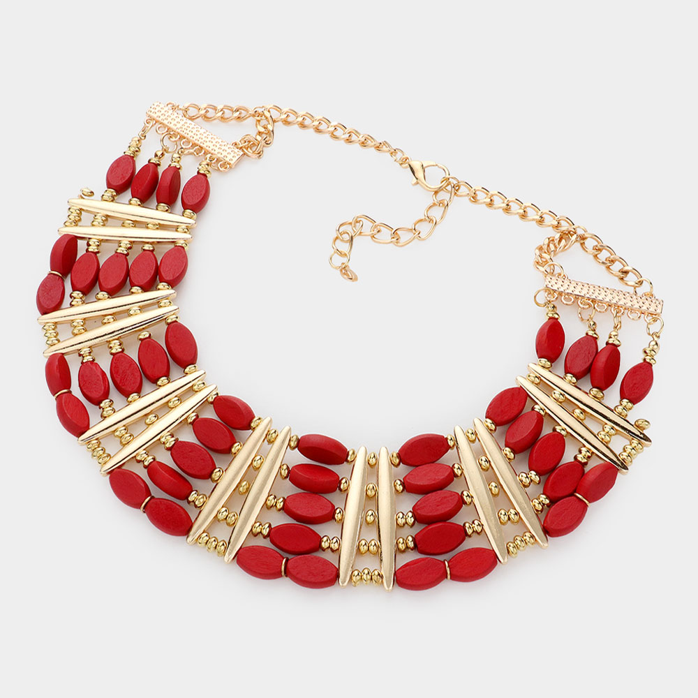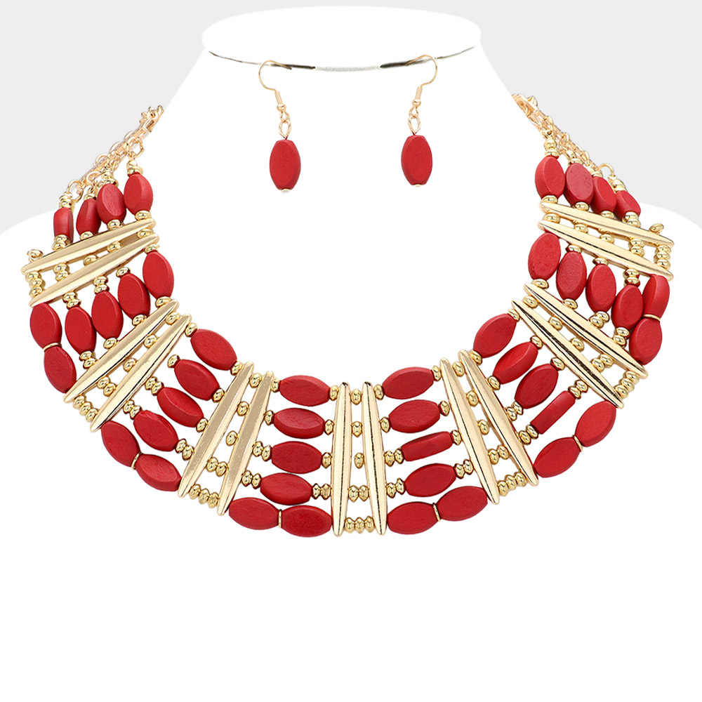 5PCS - Emerald Cut Stone Accented Wood Ball Faceted Beaded Stretch Bracelets