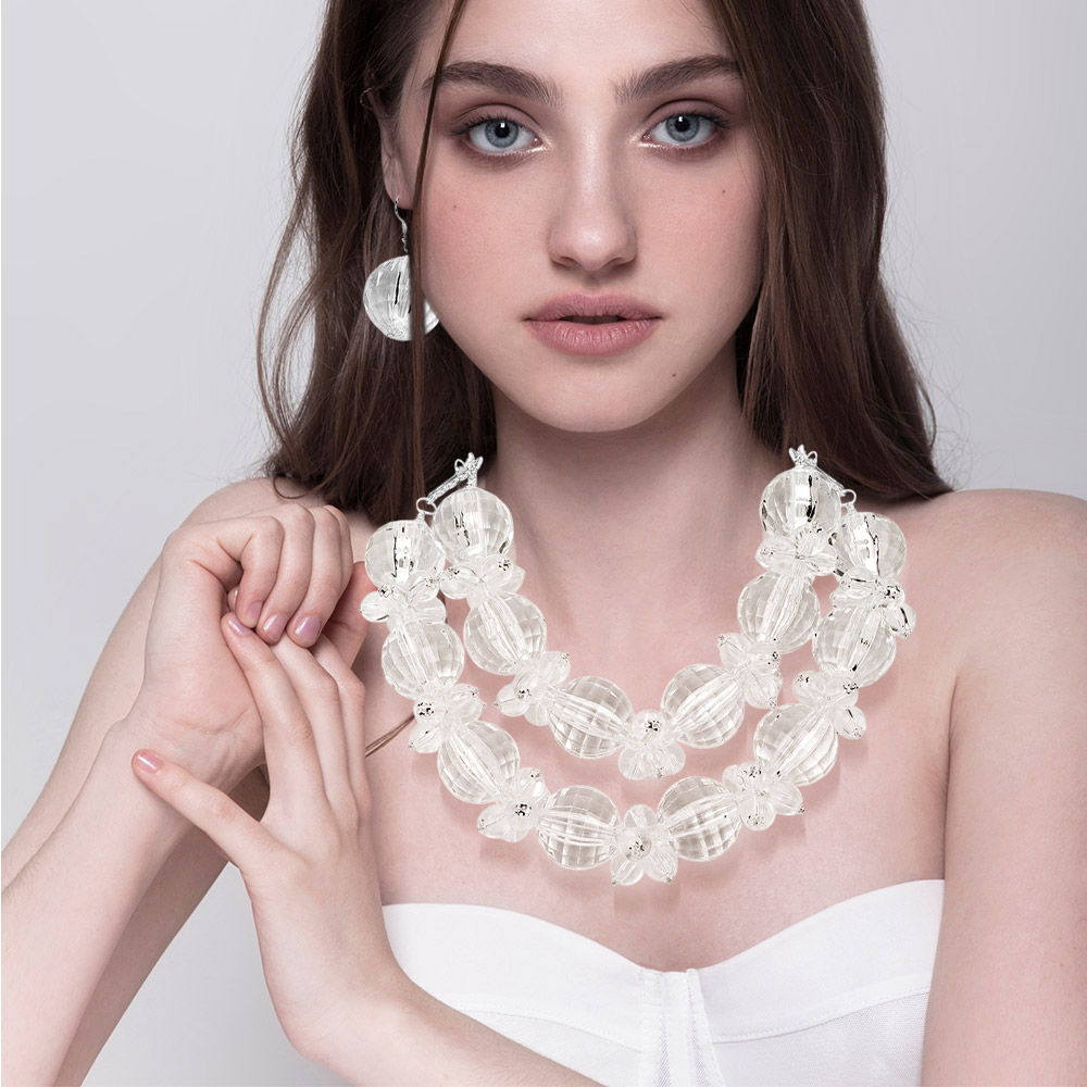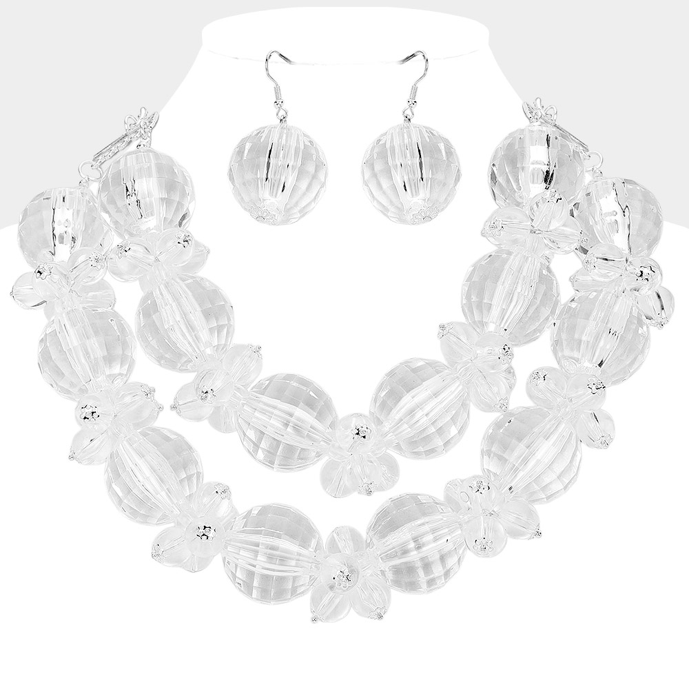 Oversized Acrylic Ball Beaded Double Layered Statement Necklace