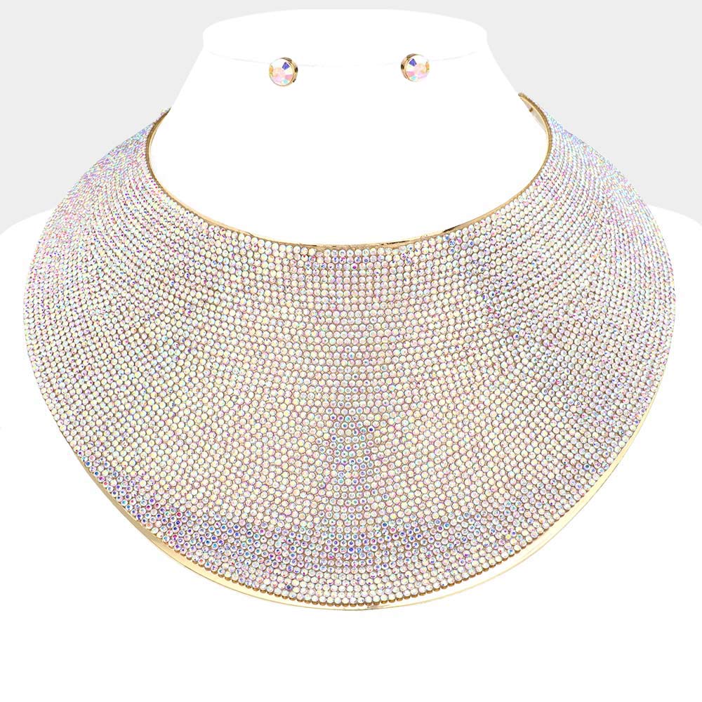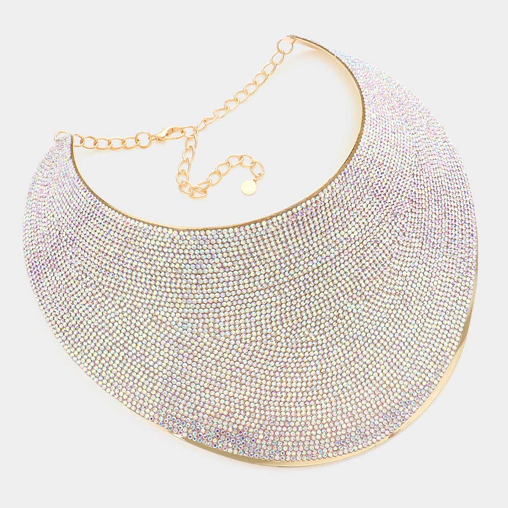 Pave Rhinestone Wide Metal Armor Collar Necklace