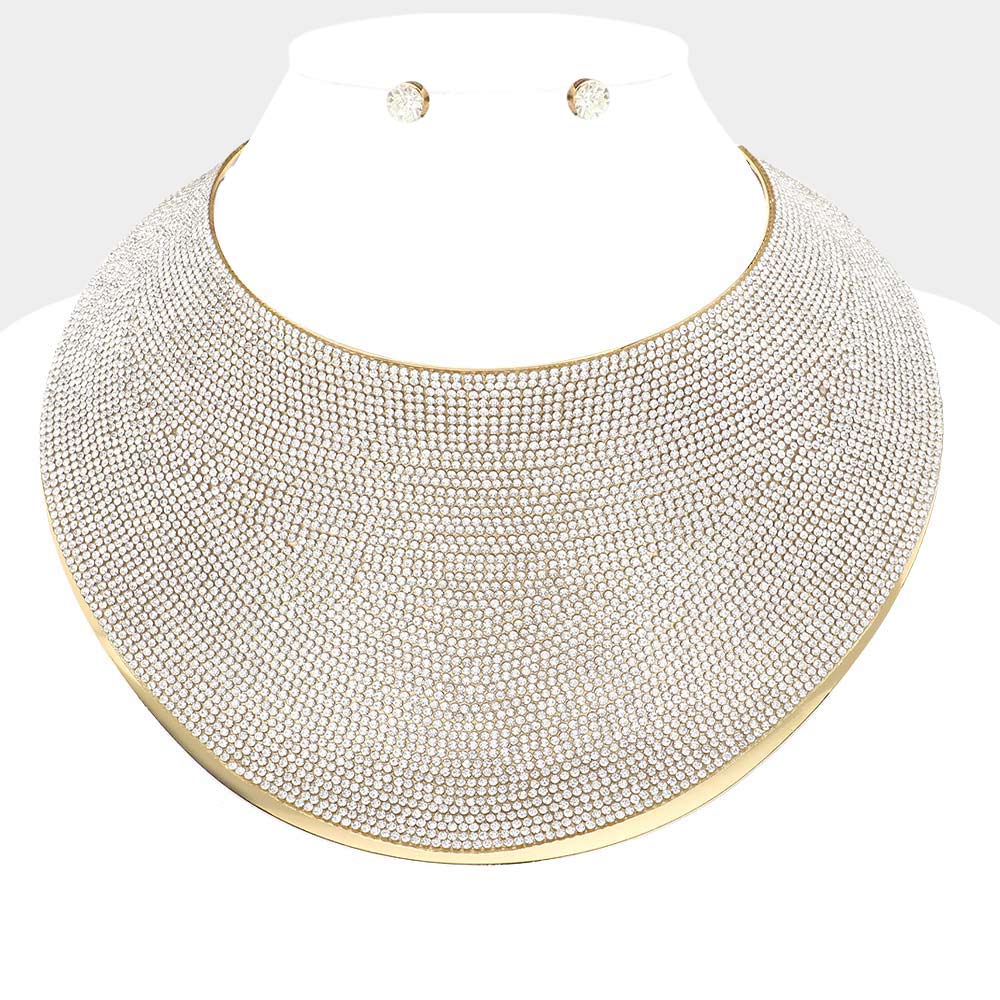 Pave Rhinestone Wide Metal Armor Collar Necklace