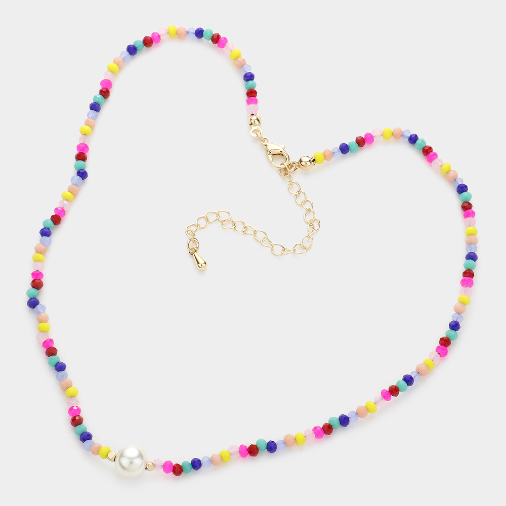 Pearl Accented Faceted Beaded Necklace