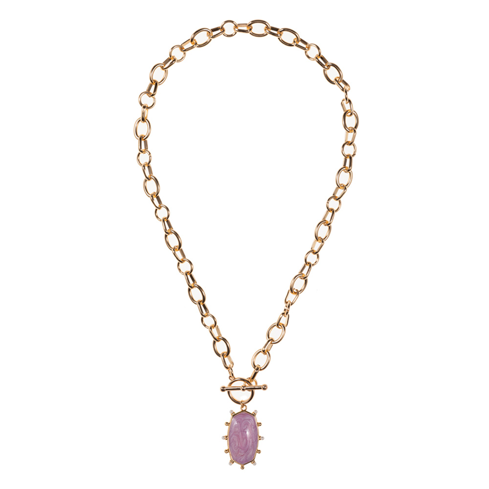 Pearl Around Marbled Enamel Hexagon Plate Pendant Toggle Necklace