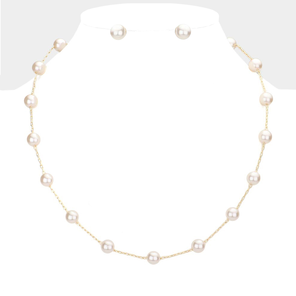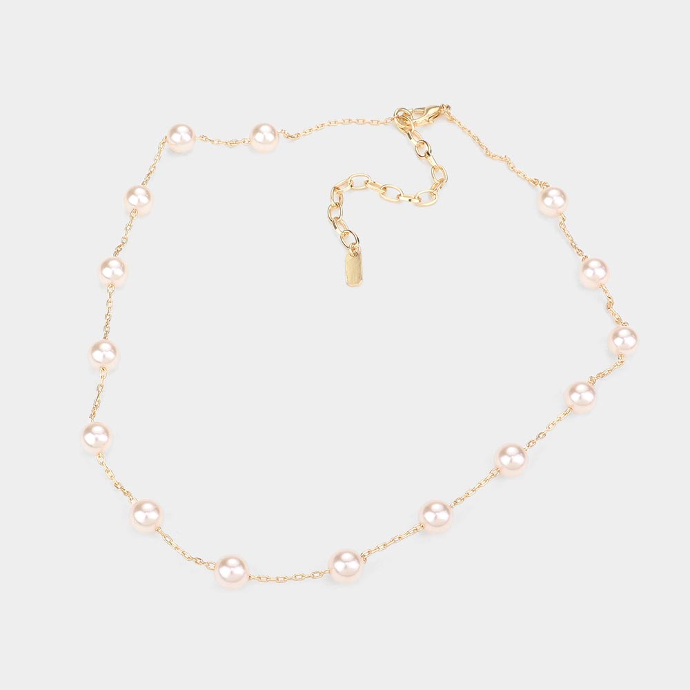 5PCS - Pearl Metal Ball Beaded Snake Stretch Multi Layered Bracelets