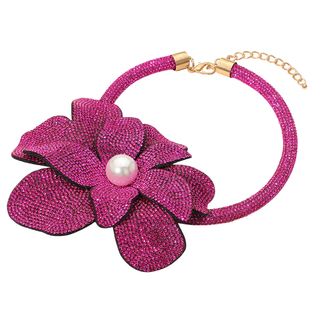 Pearl Centered Bling Studded Oversized Flower Pointed Necklace