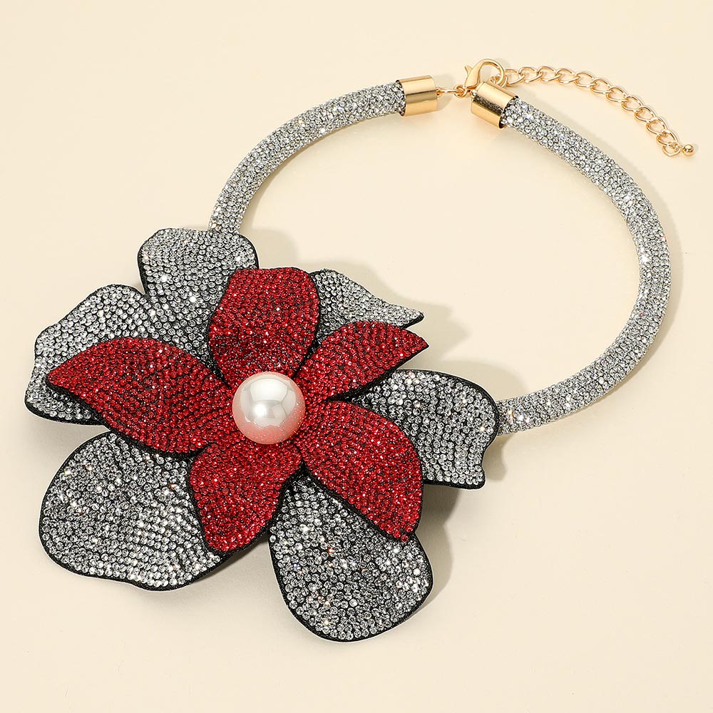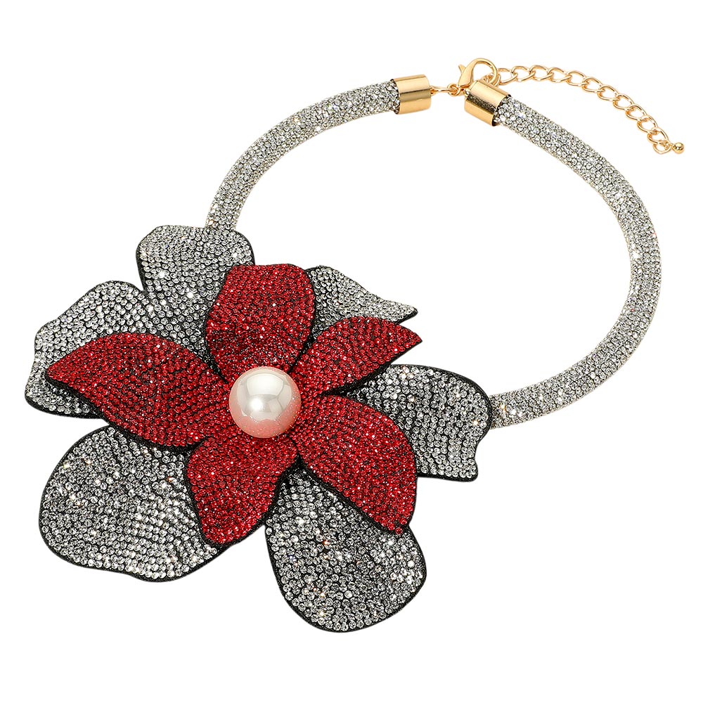 Pearl Centered Bling Studded Oversized Flower Pointed Necklace