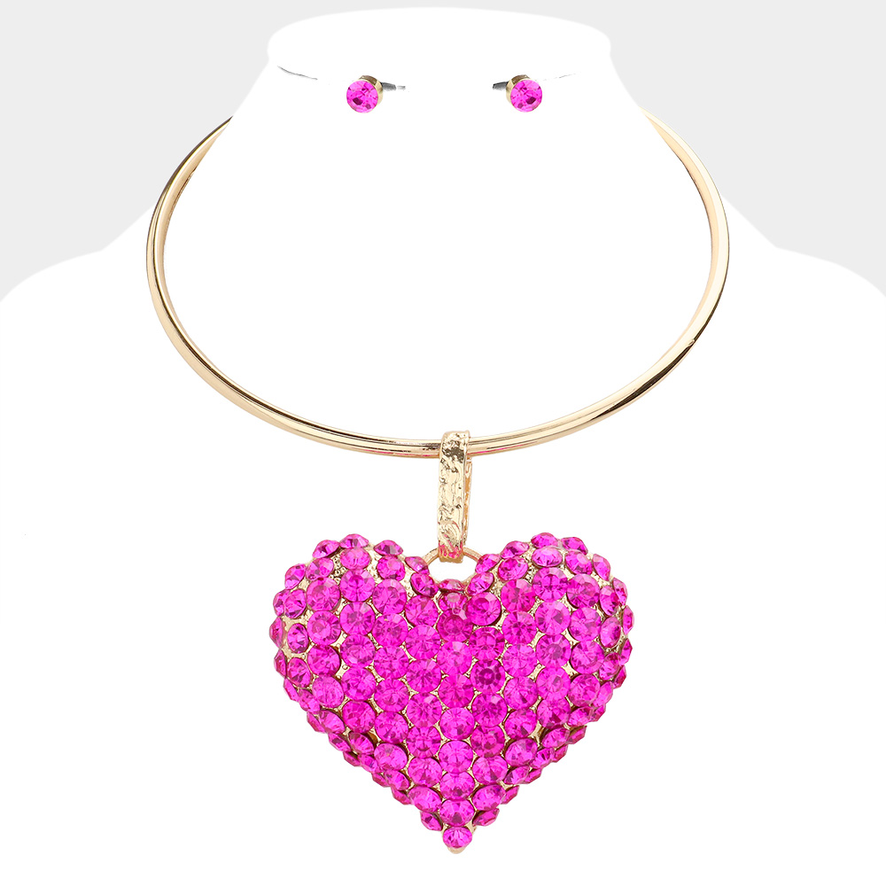 Bubble Stone Cluster Heart Pendant Necklace