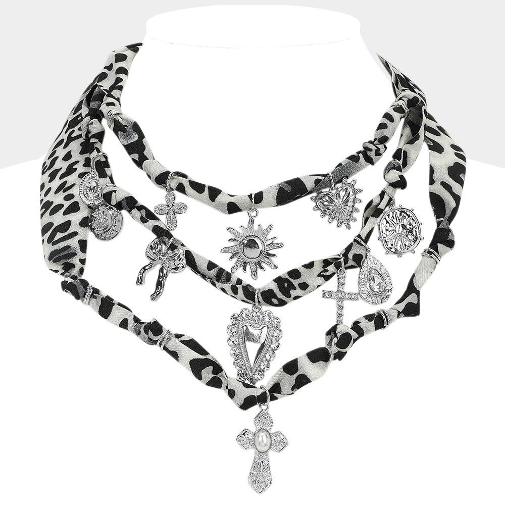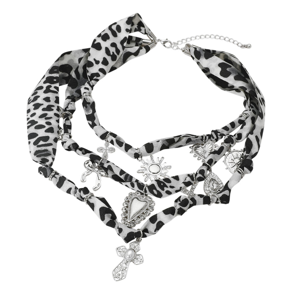 Details • Necklace Size : 15" + 3.5" L • Decor Size : 4.5" L • Make a bold impression with this layered necklace featuring mixed symbolic charms and a standout leopard-print wrap. Its multi-strand design combines boho flair with statement elegance, perfect for elevating any look with confidence and style. • Lead and Nickel Compliant
