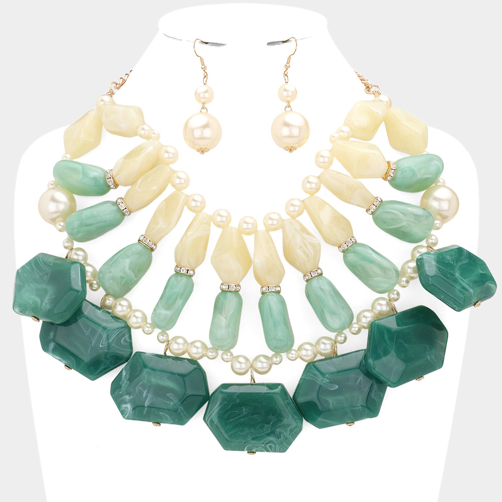 Chunky Marbled Beads Pearl Beaded Statement Necklace