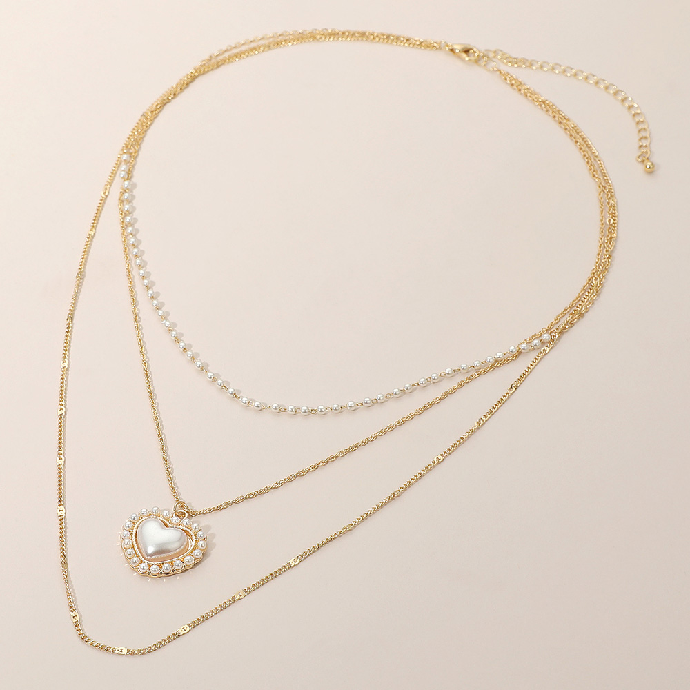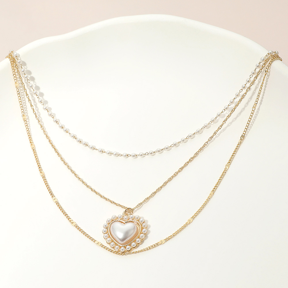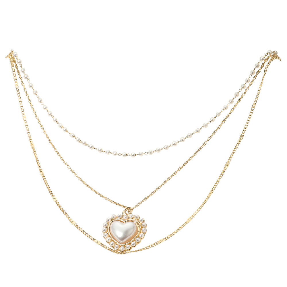 Pearl Heart Pendant Accent Triple Chain Layered Necklace Pearl Heart Pendant Accent Triple Chain Layered Necklace Pearl Heart Pendant Accent Triple Chain Layered Necklace
