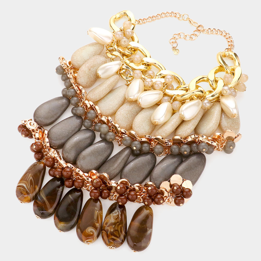 Pearl Marbled Stone Cluster Statement Necklace