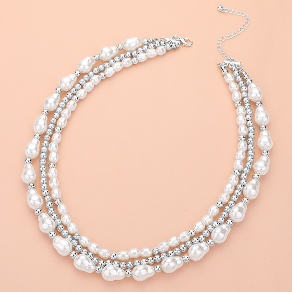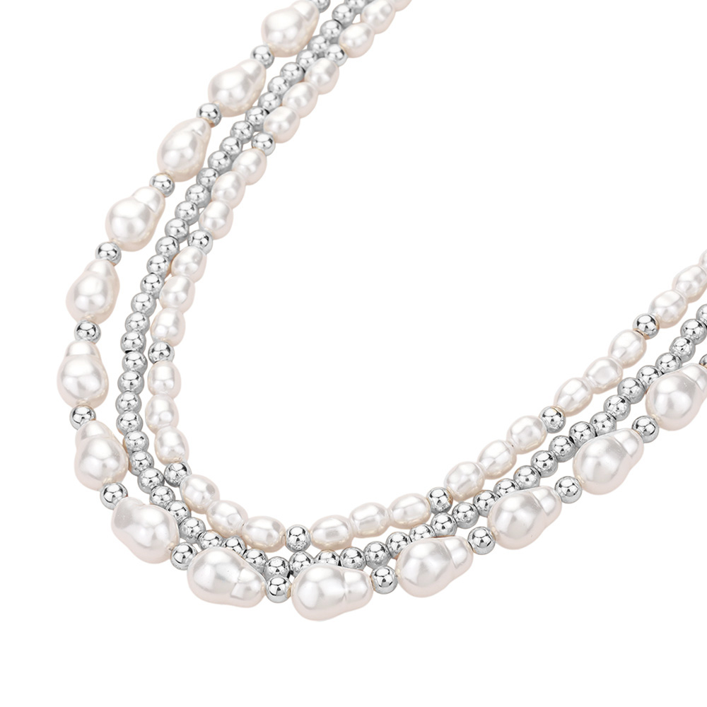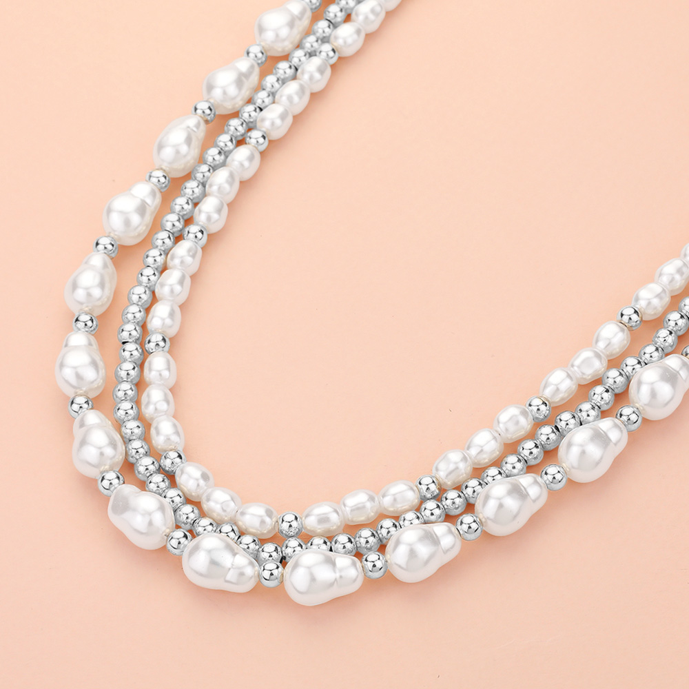 Pearl Metal Ball Beaded Strand Necklace