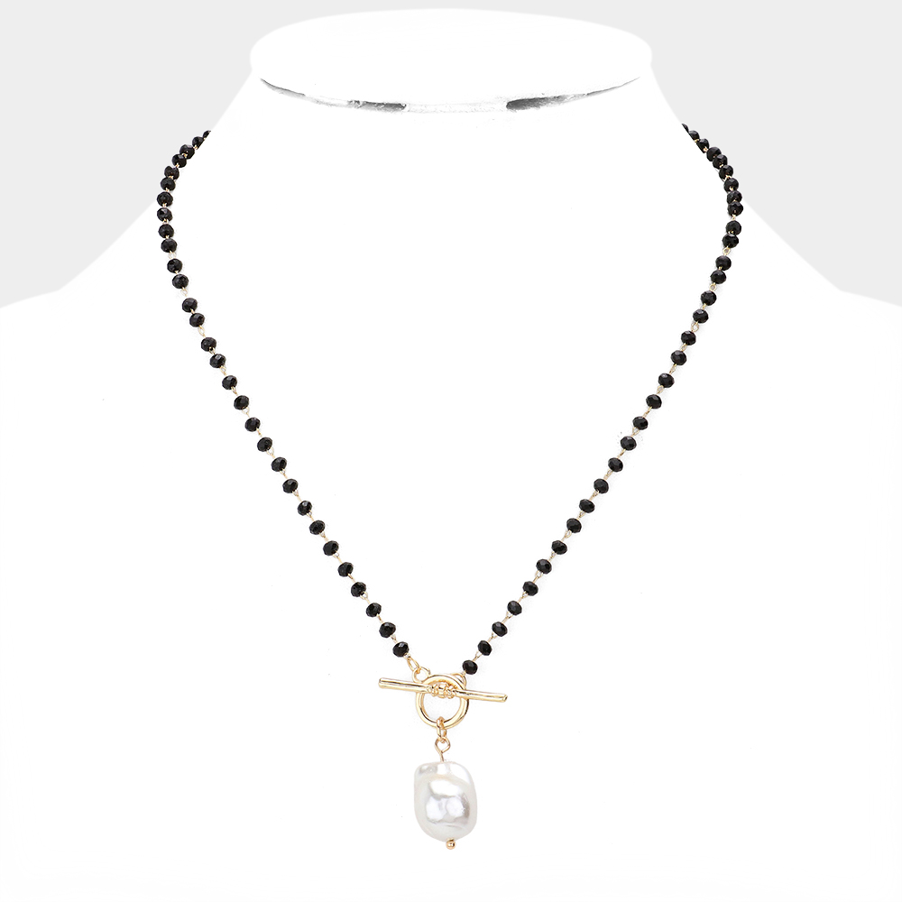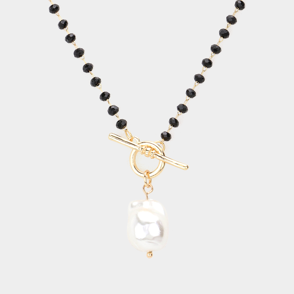 Pearl Pendant Faceted Beaded Toggle Necklace