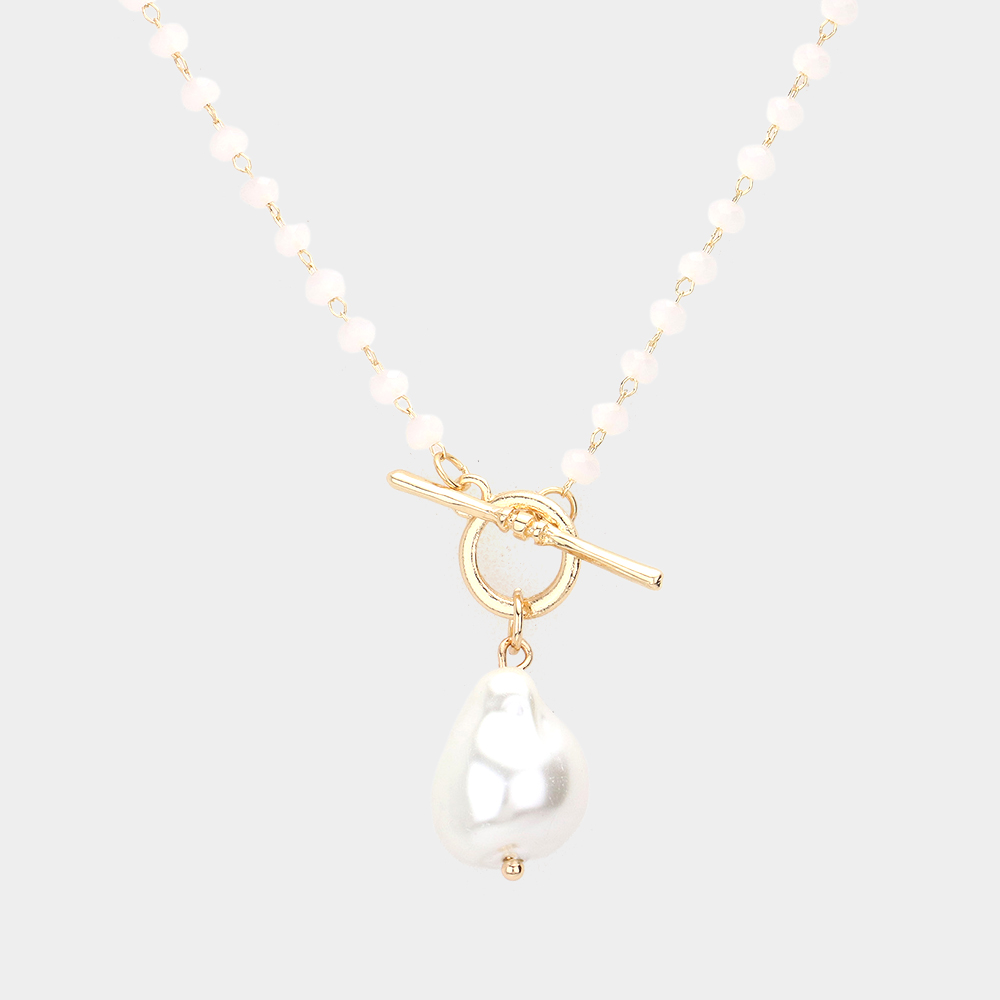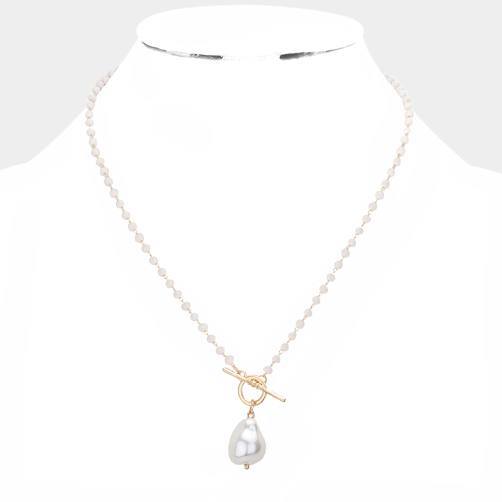 Pearl Pendant Faceted Beaded Toggle Necklace