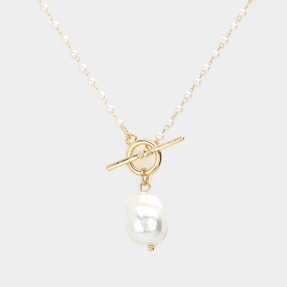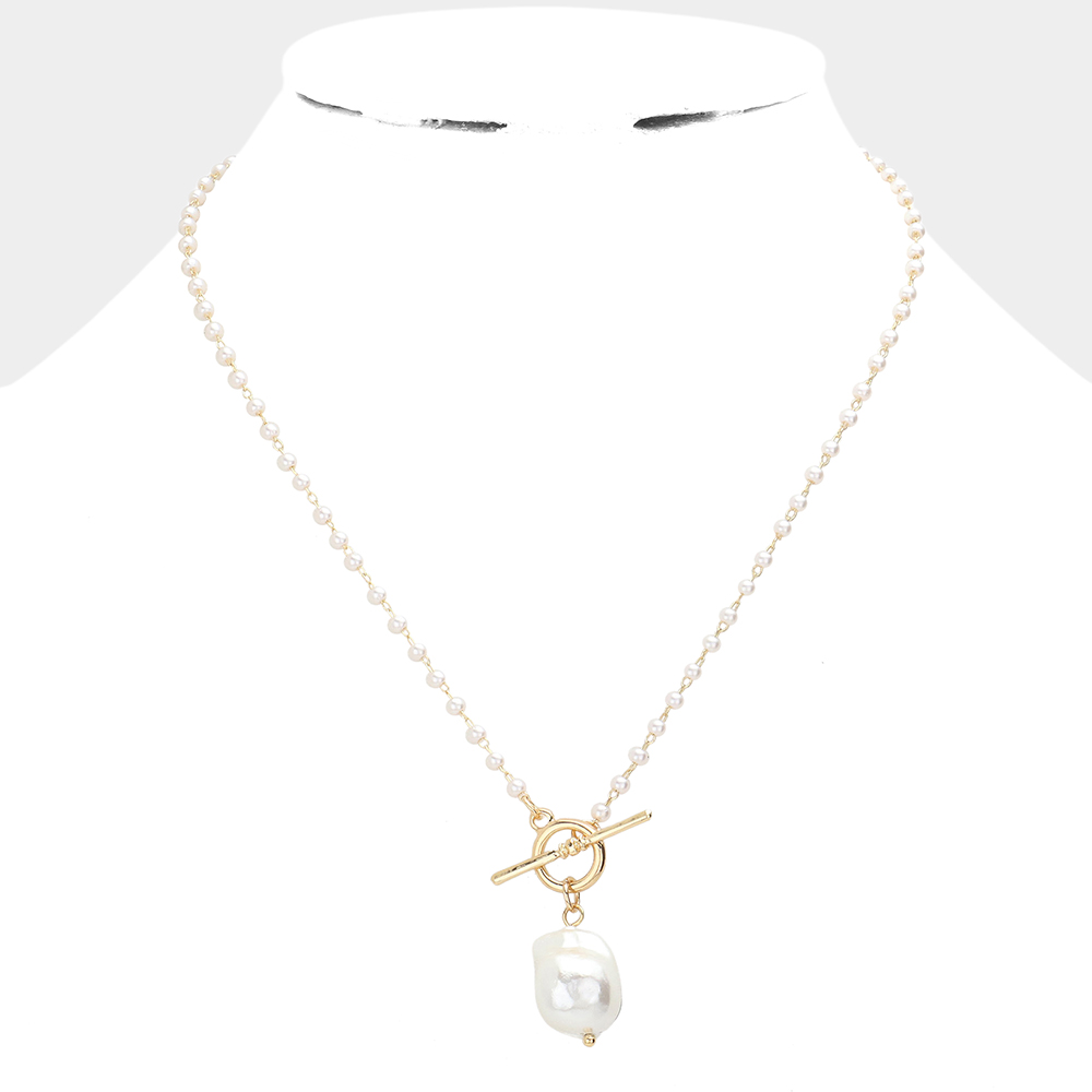 Pearl Pendant Faceted Beaded Toggle Necklace