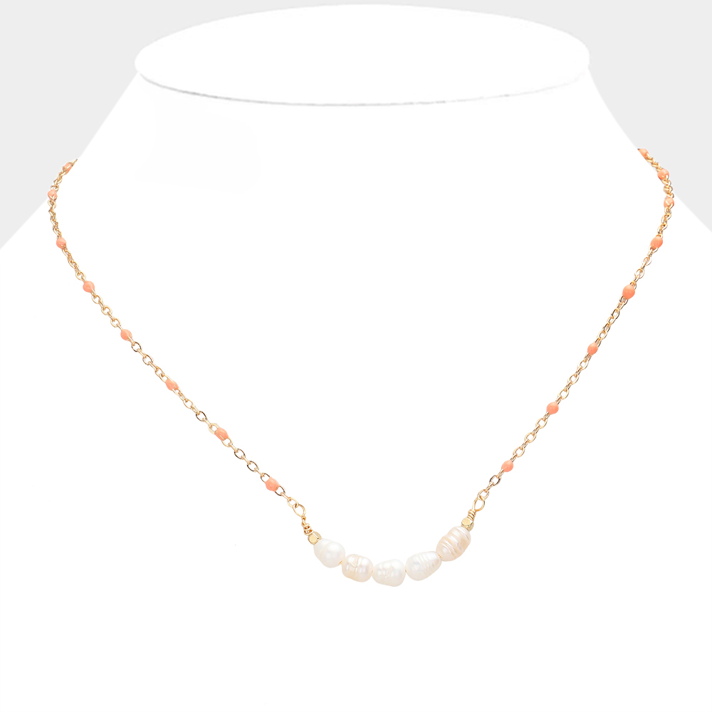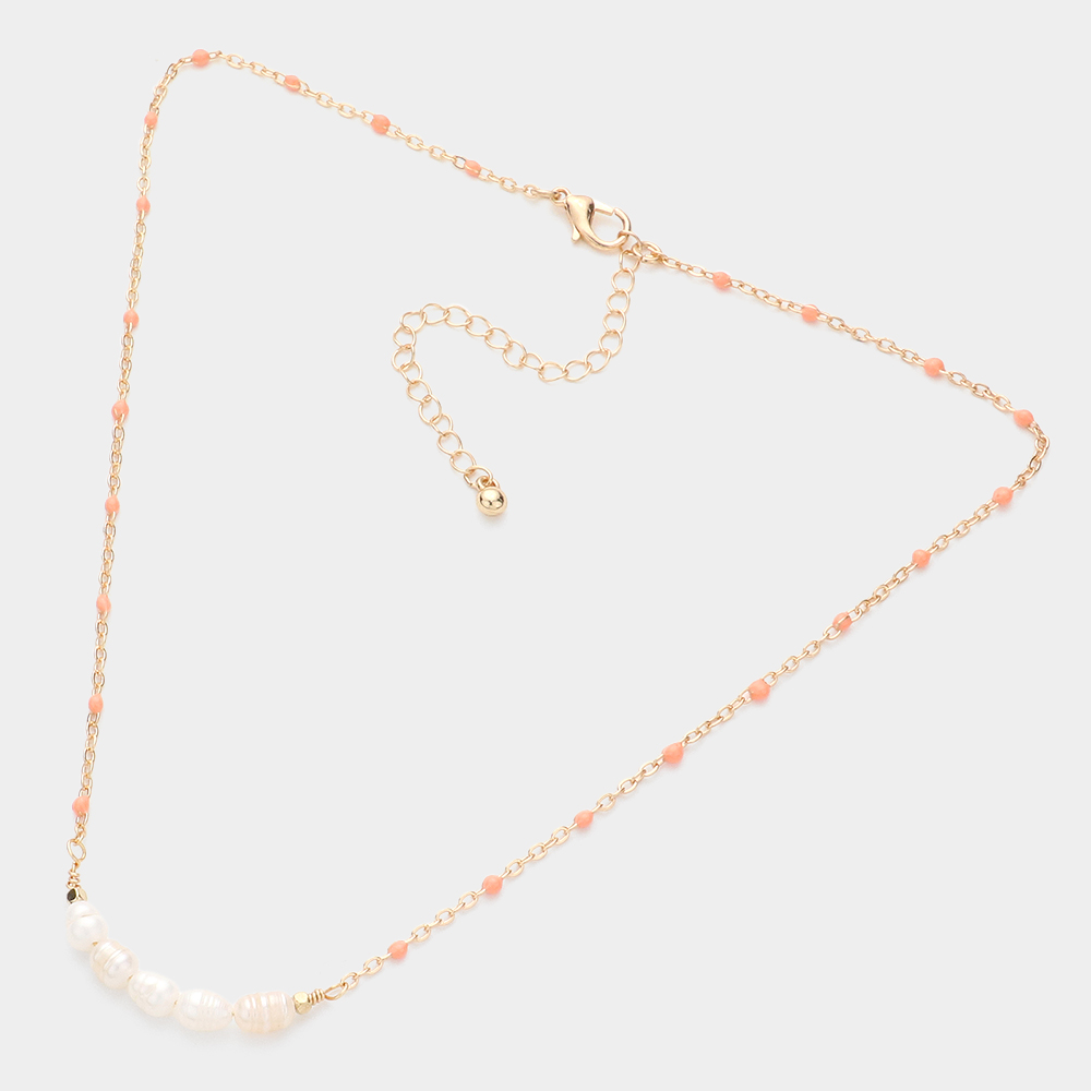 Pearl Pointed Metal Heart Pendant Double Layered Necklace