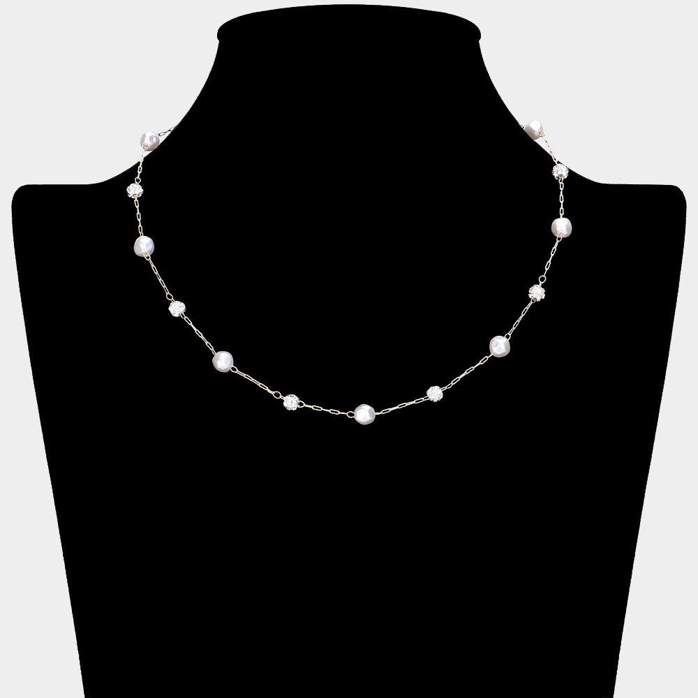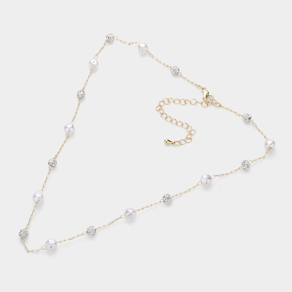 Pearl Shamballa Ball Station Necklace