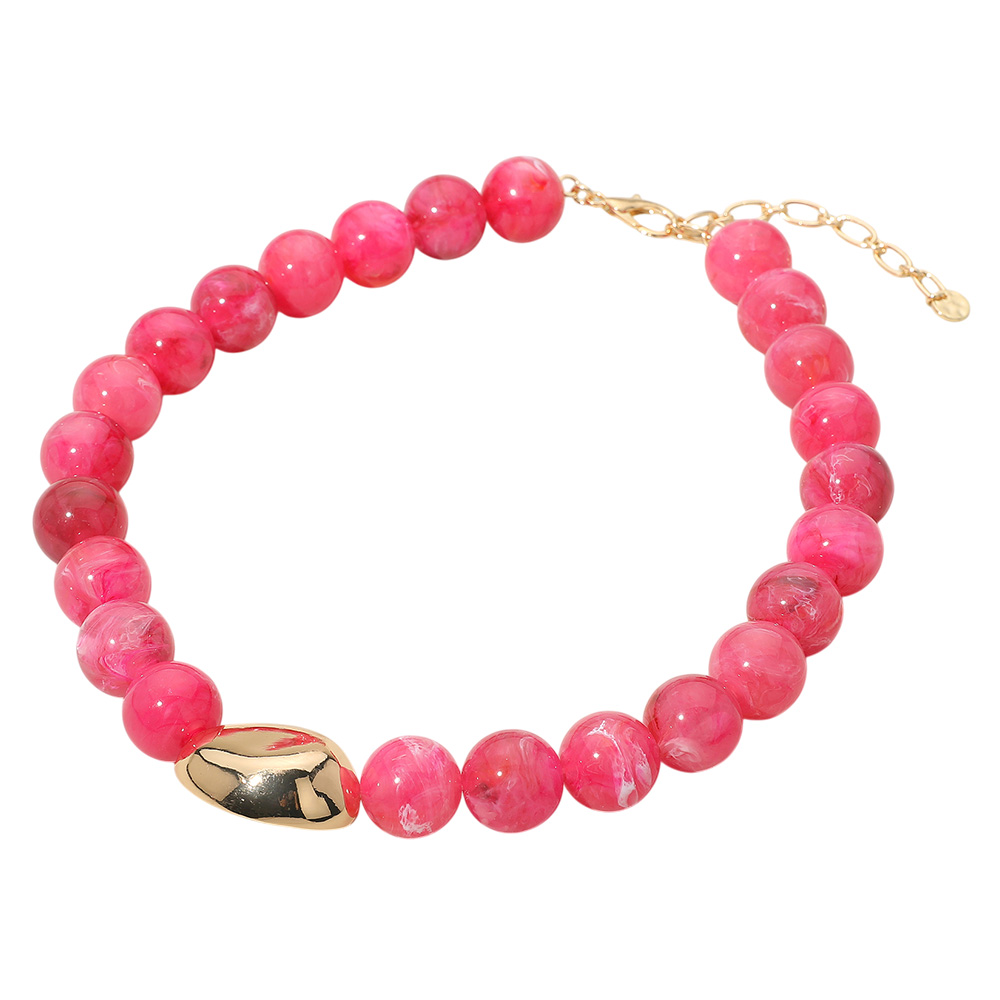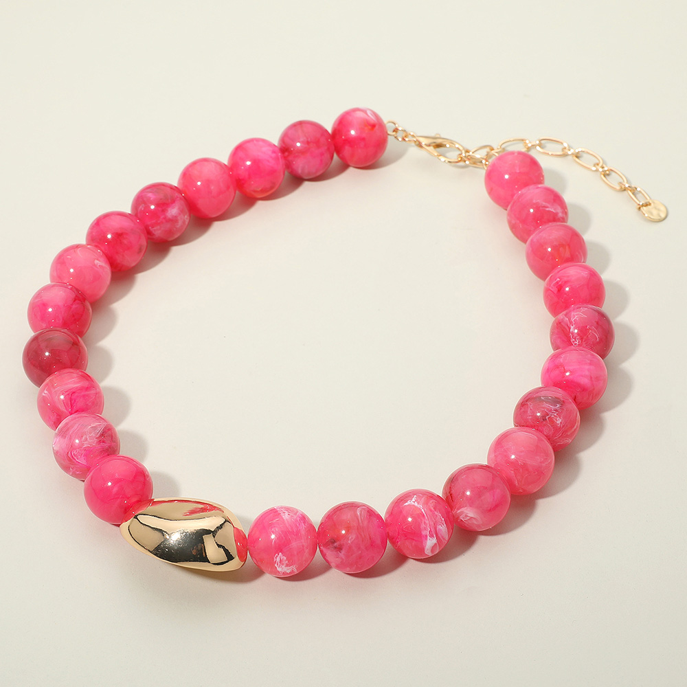 • Make a bold impression with this beaded statement necklace, featuring smooth round beads and a polished metallic accent. Perfect for elevating your style with a touch of artistic flair and modern charm.