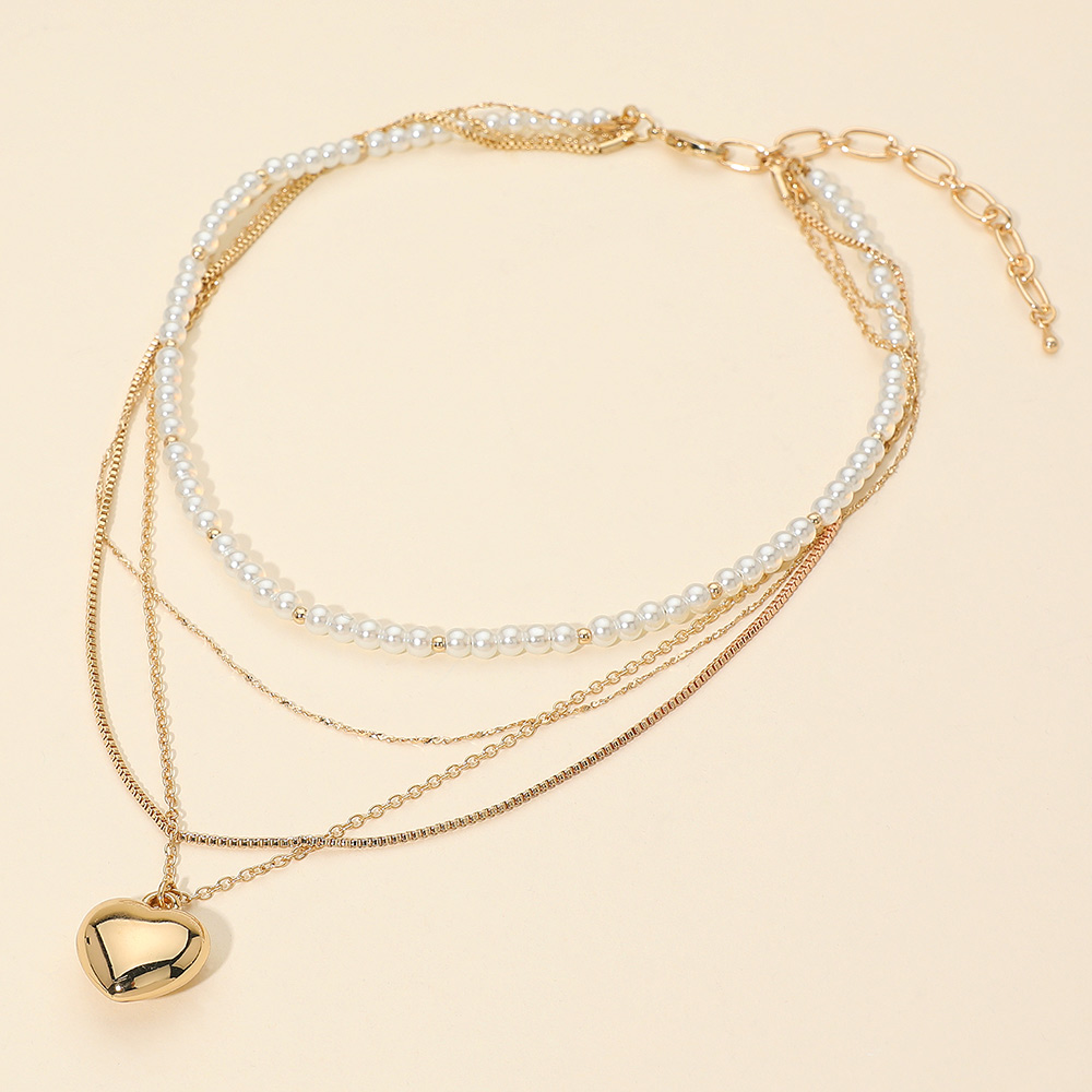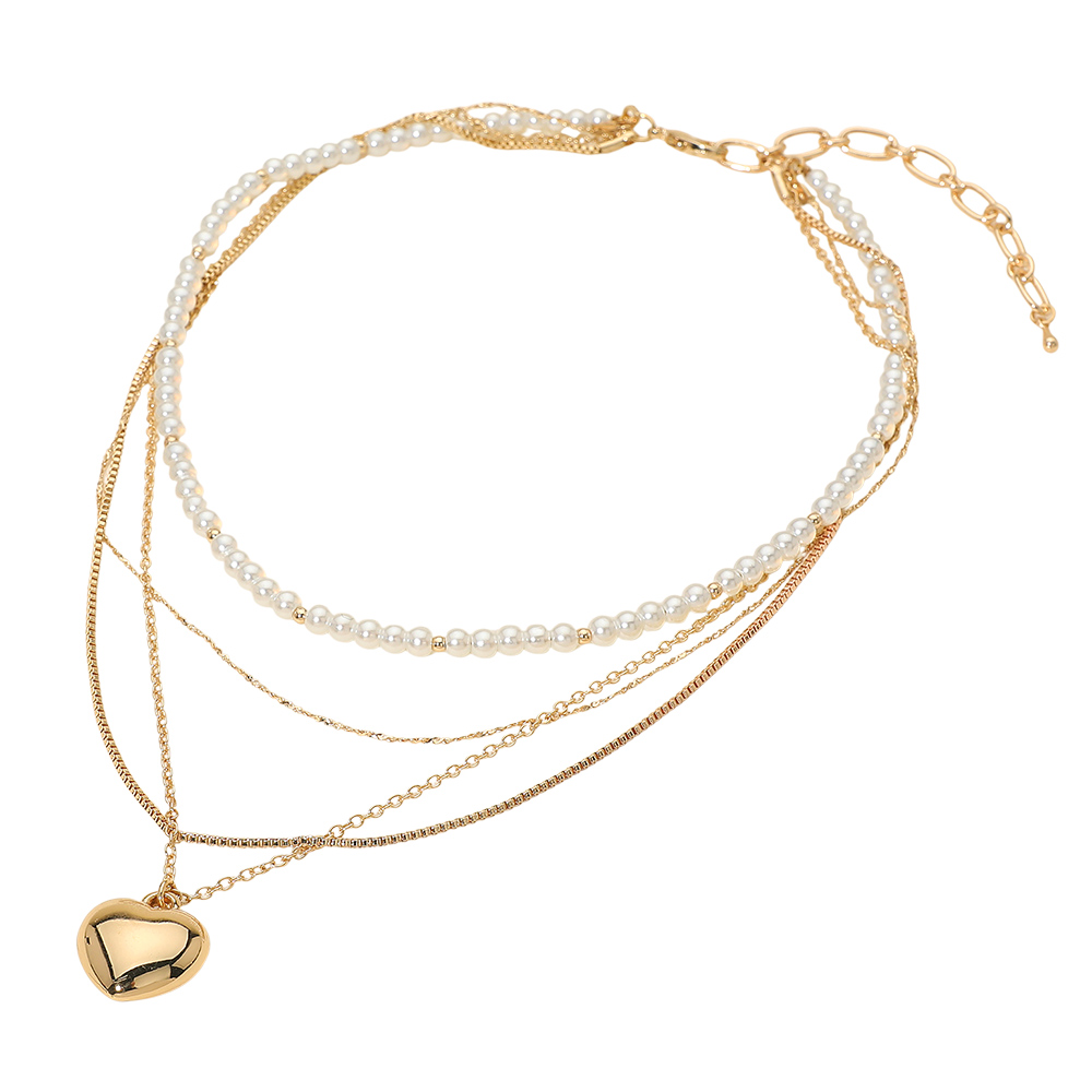 Details • Necklace Size : 14" + 3.25" L • Decor Size : 3" L • Pendant Size : 0.7" X 0.75" • Enhance any outfit with this layered pearl heart charm necklace featuring delicate multi-strand styling and a graceful pendant accent. Ideal for everyday wear or special occasions, it offers versatile elegance and makes a thoughtful, stylish gift choice for any jewelry lover. • Brass • Lead and Nickel Compliant