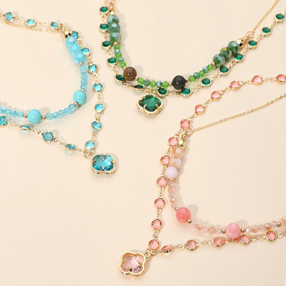 • Stylish dual-layer necklace with intricate bead detailing and a statement quatrefoil pendant for a refined, modern accent. Designed to elevate casual looks or complement evening wear, it layers beautifully with other pieces and makes a thoughtful gift choice for any special occasion.