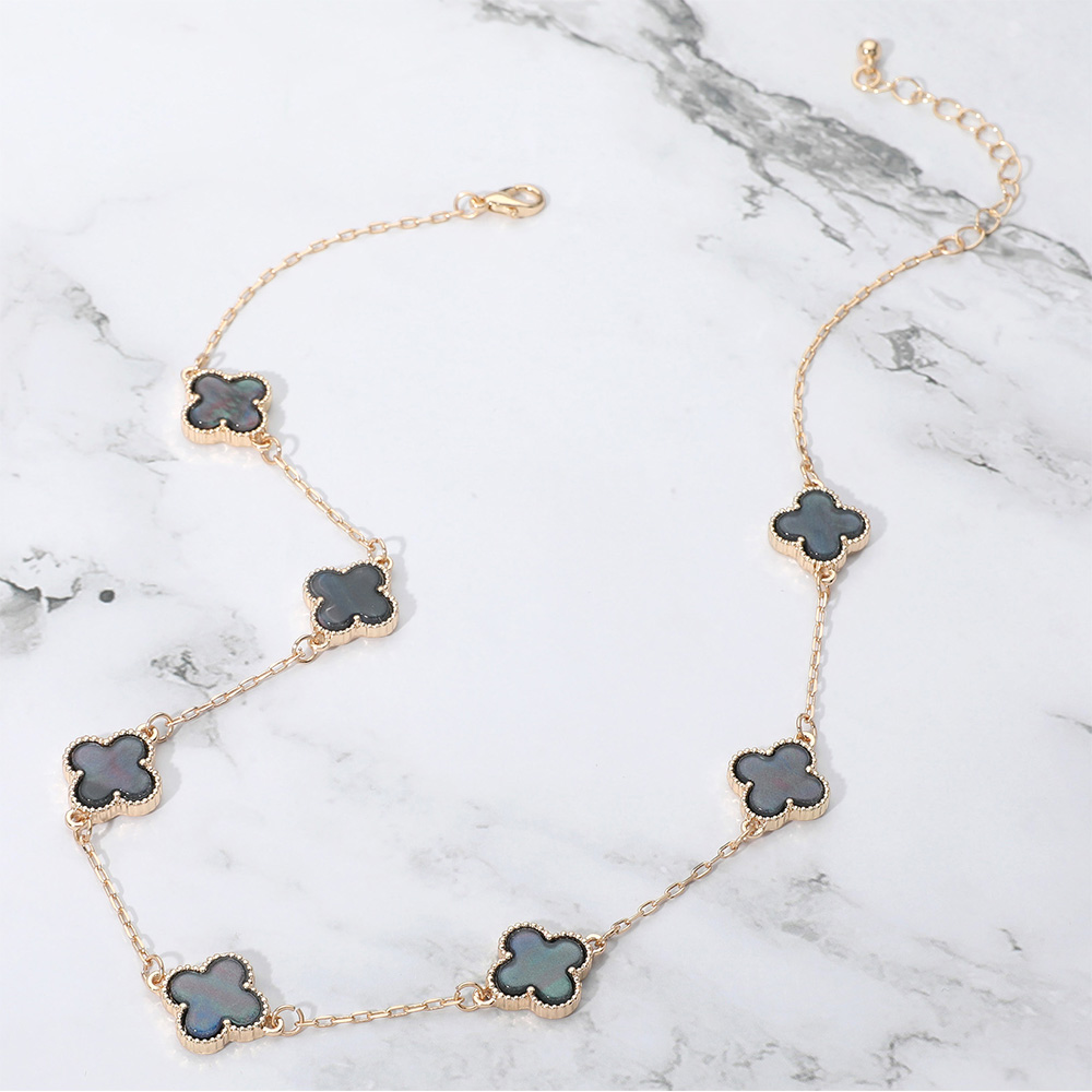 Gold Dipped Stone Paved Quatrefoil Pendant Necklace