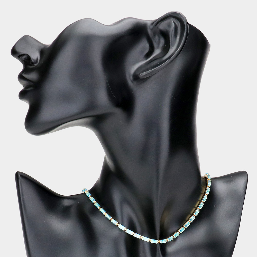 Oval Stone Accented Rhinestone Trimmed Necklace