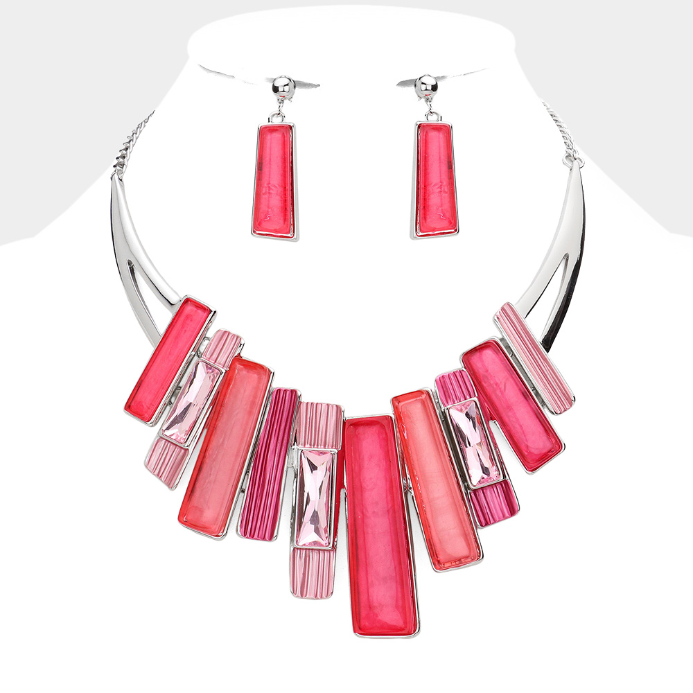 Half Hoop Metal Quatrefoil Lucite Bead Dangle Earrings